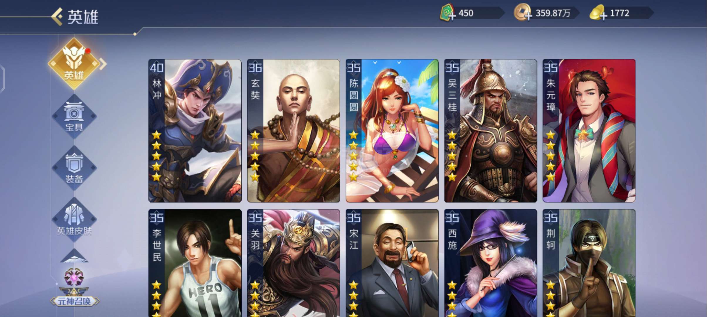 V8侠投林元璋秦琼等23个五星,大量4星英雄。性价比很高!