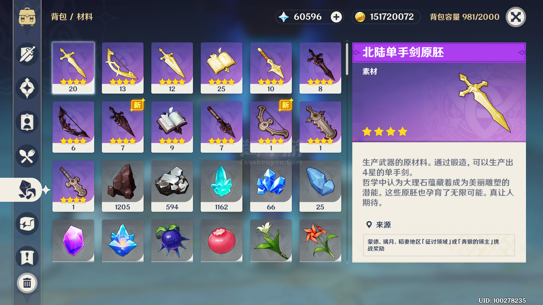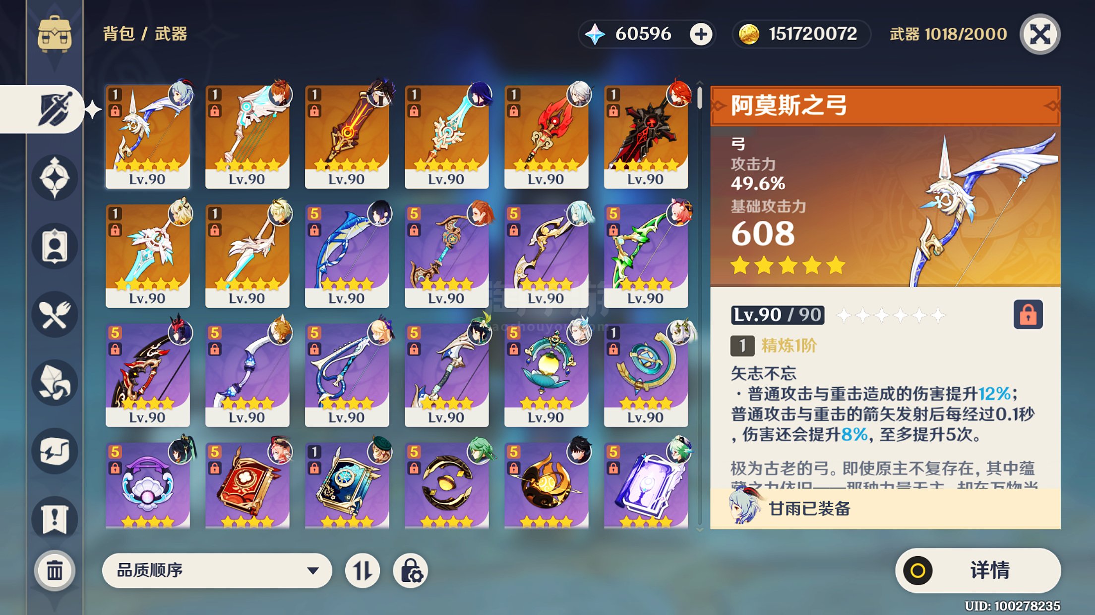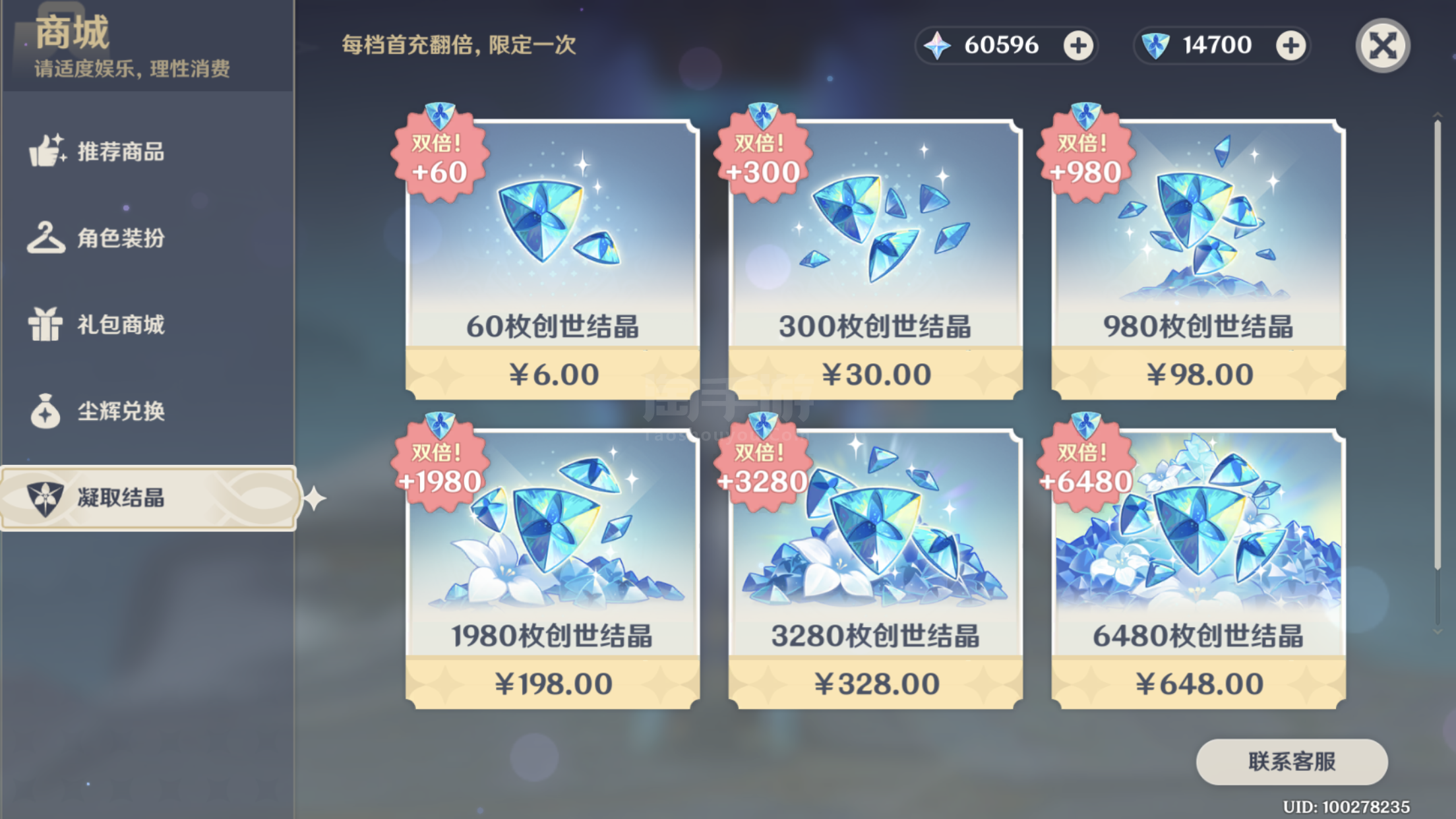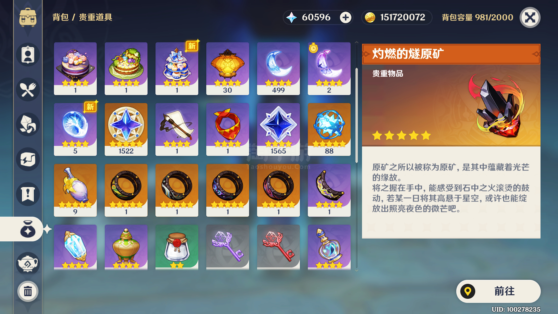 开服自玩号,大小月卡没断过,所有活动武器全有,号上还有6万原石,星辉1500个,创世结晶14700,大概加一起能换700多个粉球,蓝球还有88个,500个树脂,12000本大经验书,28个皇冠。