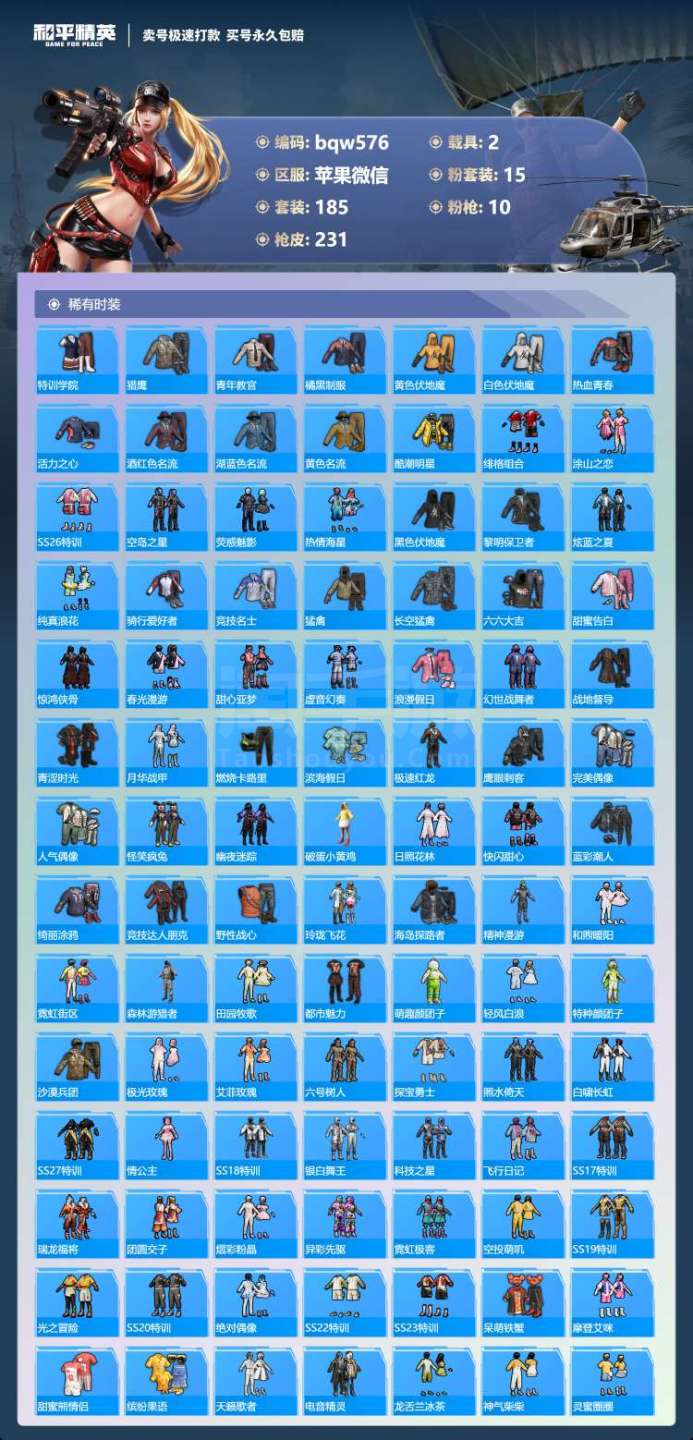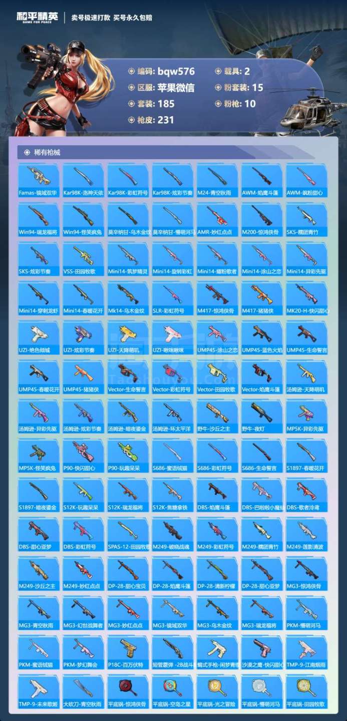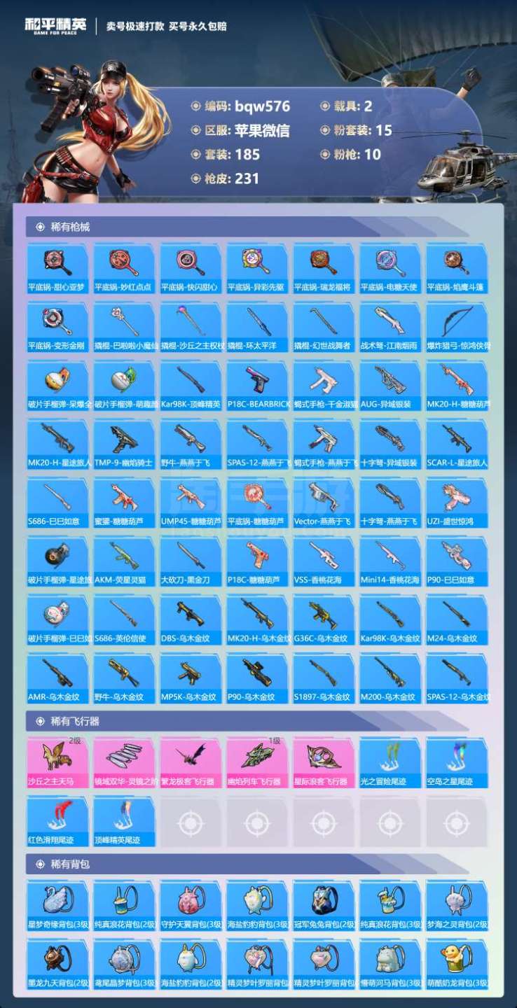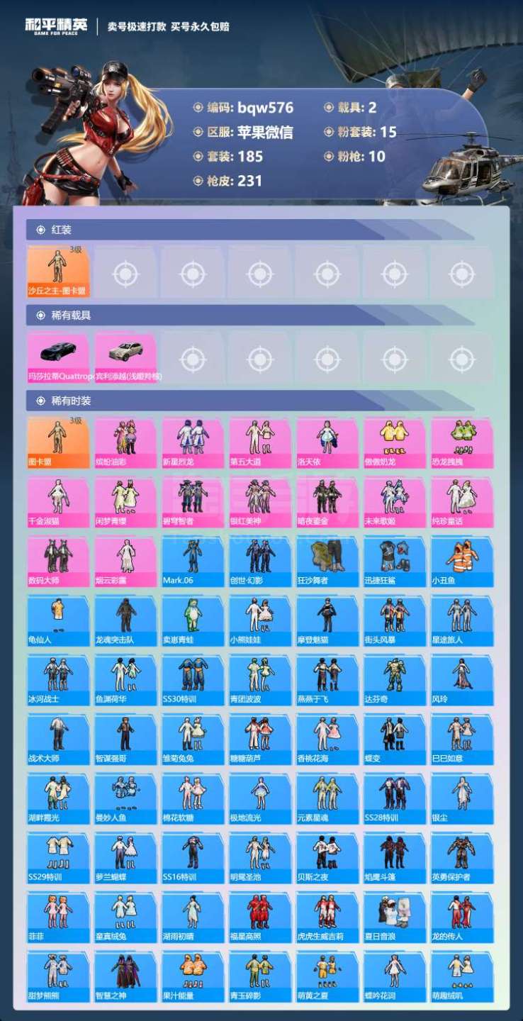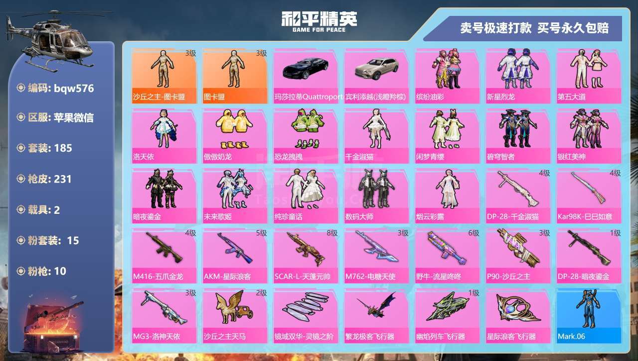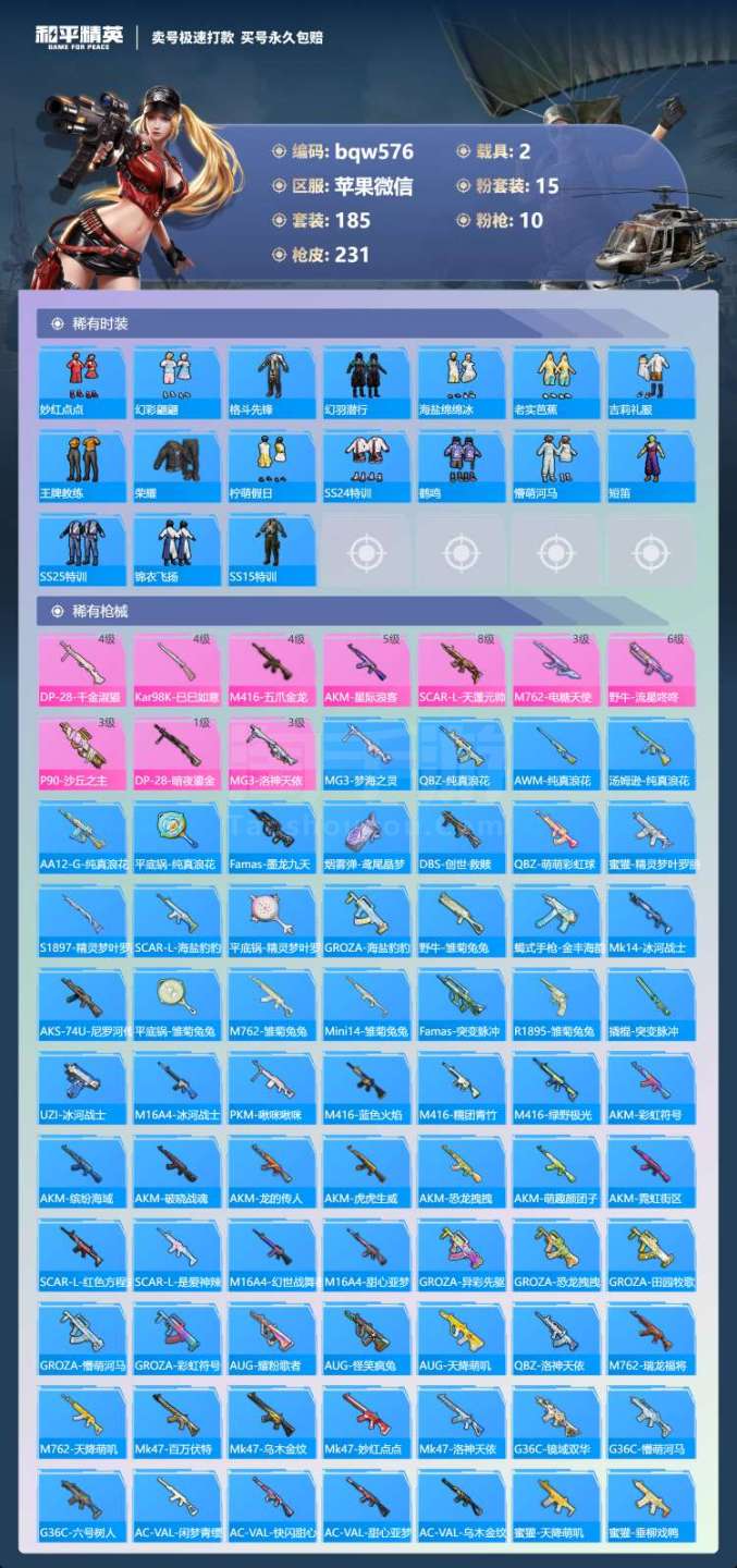 bd576/苹果微-15王牌印记-15粉装-10特效枪-2载具-87119热力值-185套装-23