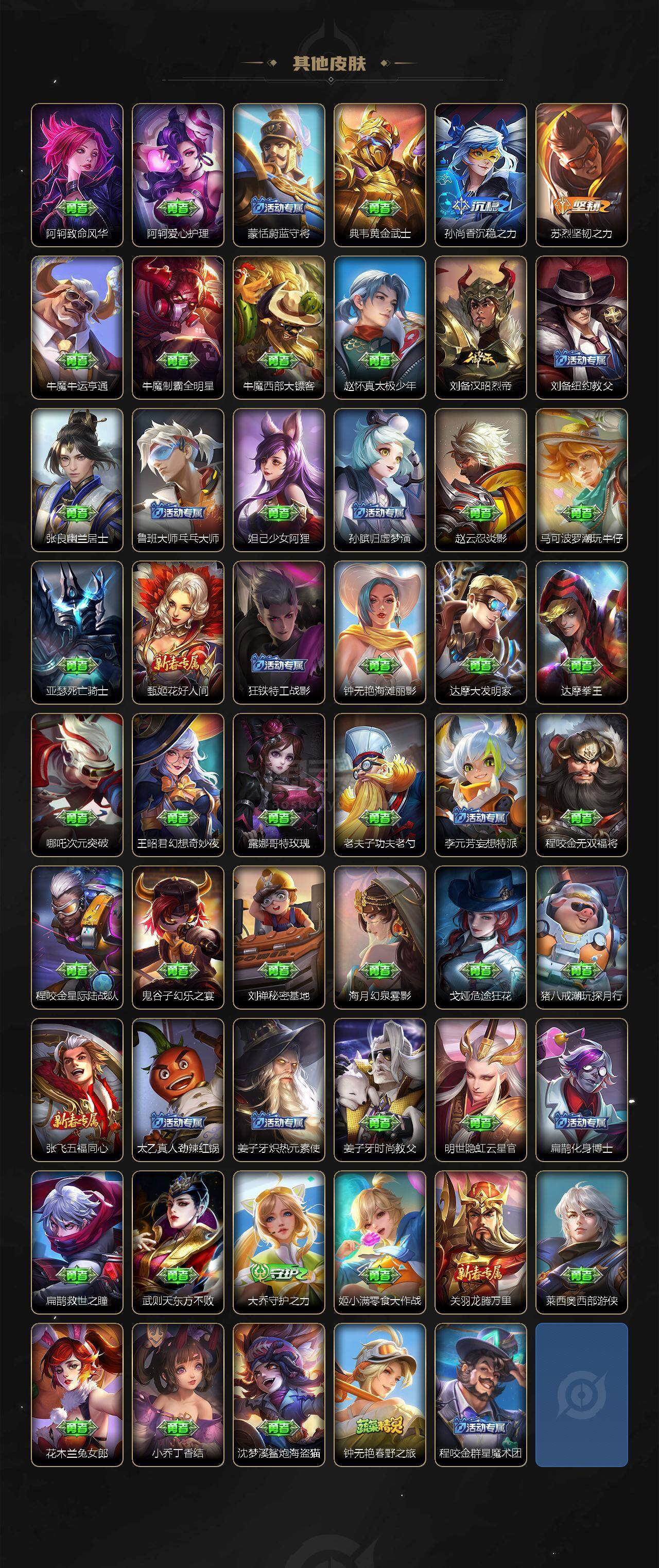 【传说皮肤】:宫本武藏地狱之眼,后羿黄金射手座,刘备时之恋人,杨戬永曜之星,桑启鸣野蒿
