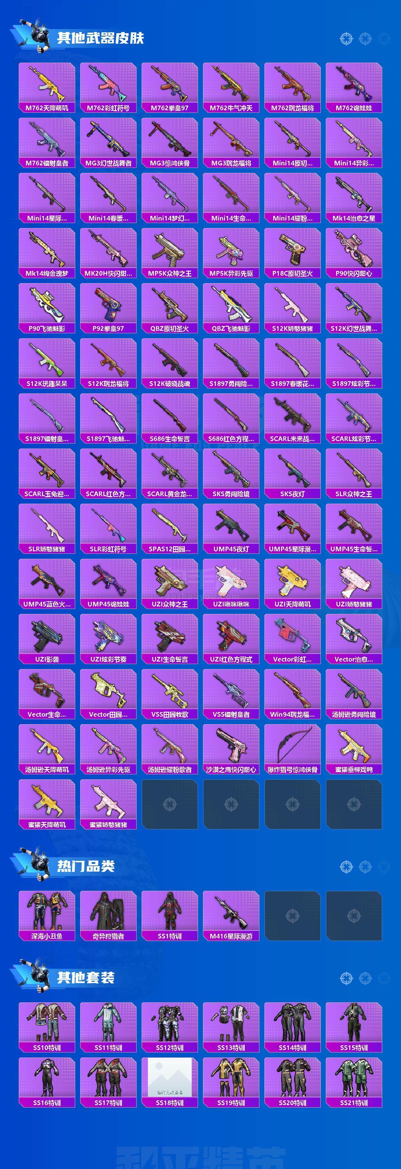 【特效枪等级】:SCAR-L-锦绣绵绵(五级SCAR-L-锦绣绵绵),M416-五爪金龙(七级M416-五爪金龙),Kar98K-巳巳如意(五级Kar98K-巳巳如意)