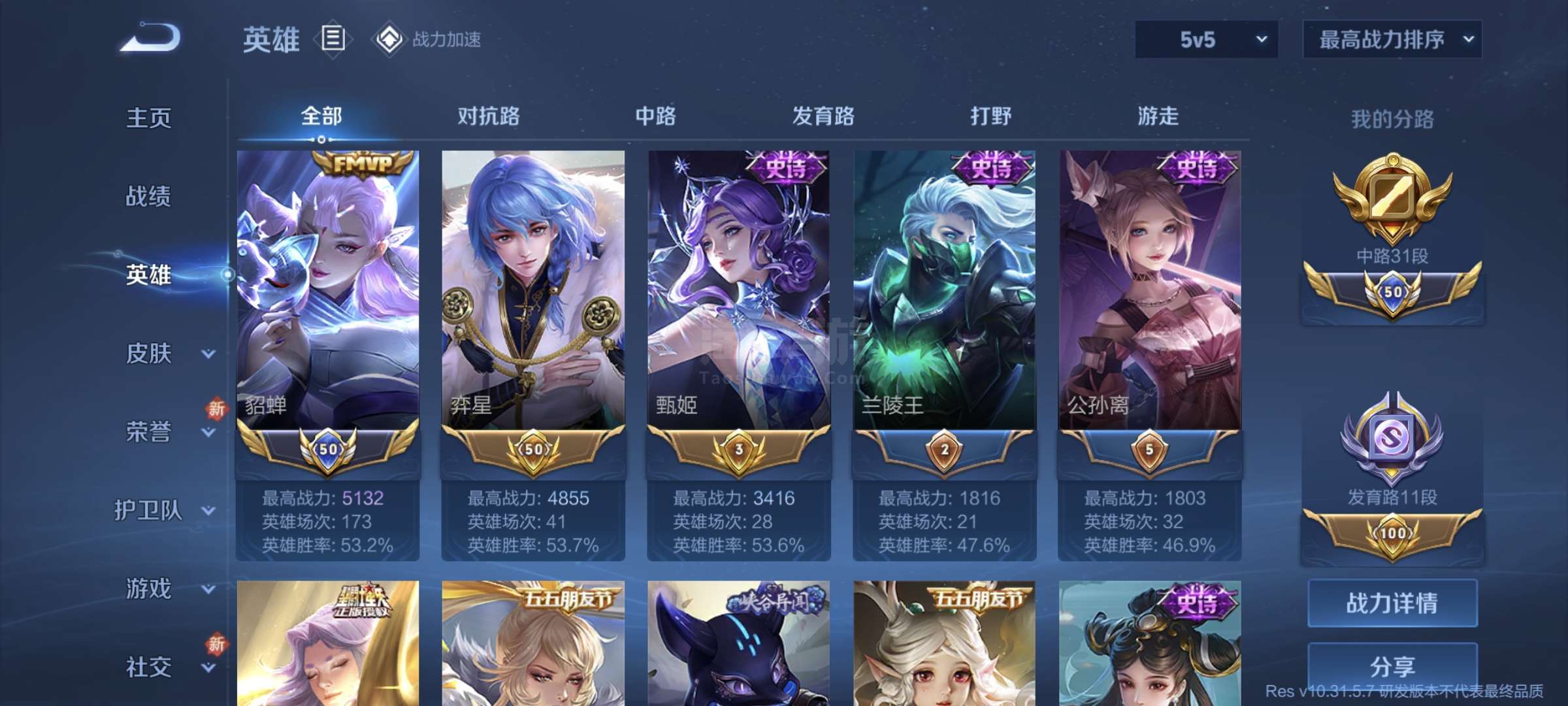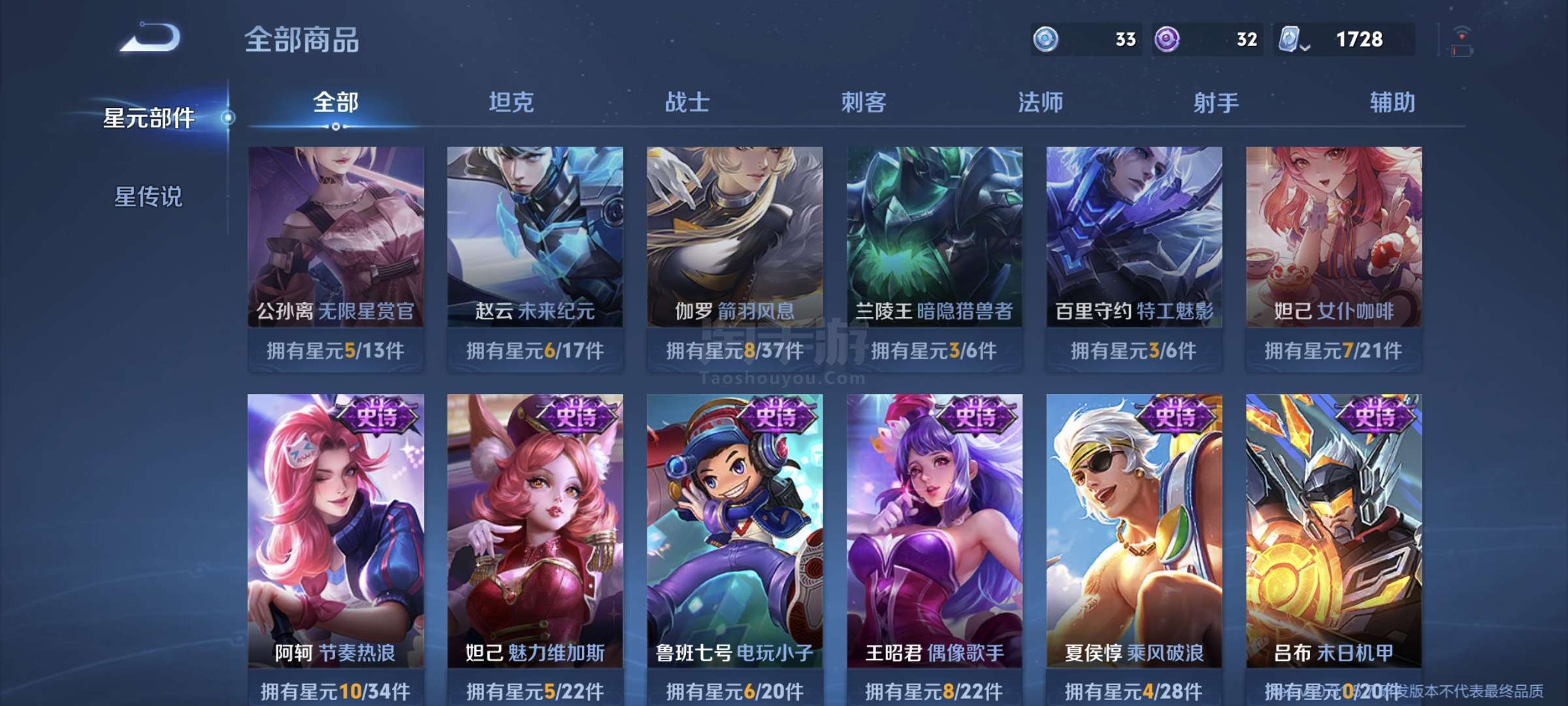 稀有皮肤:芈月典藏,花木兰典藏,女娲补天 剩余1728点卷