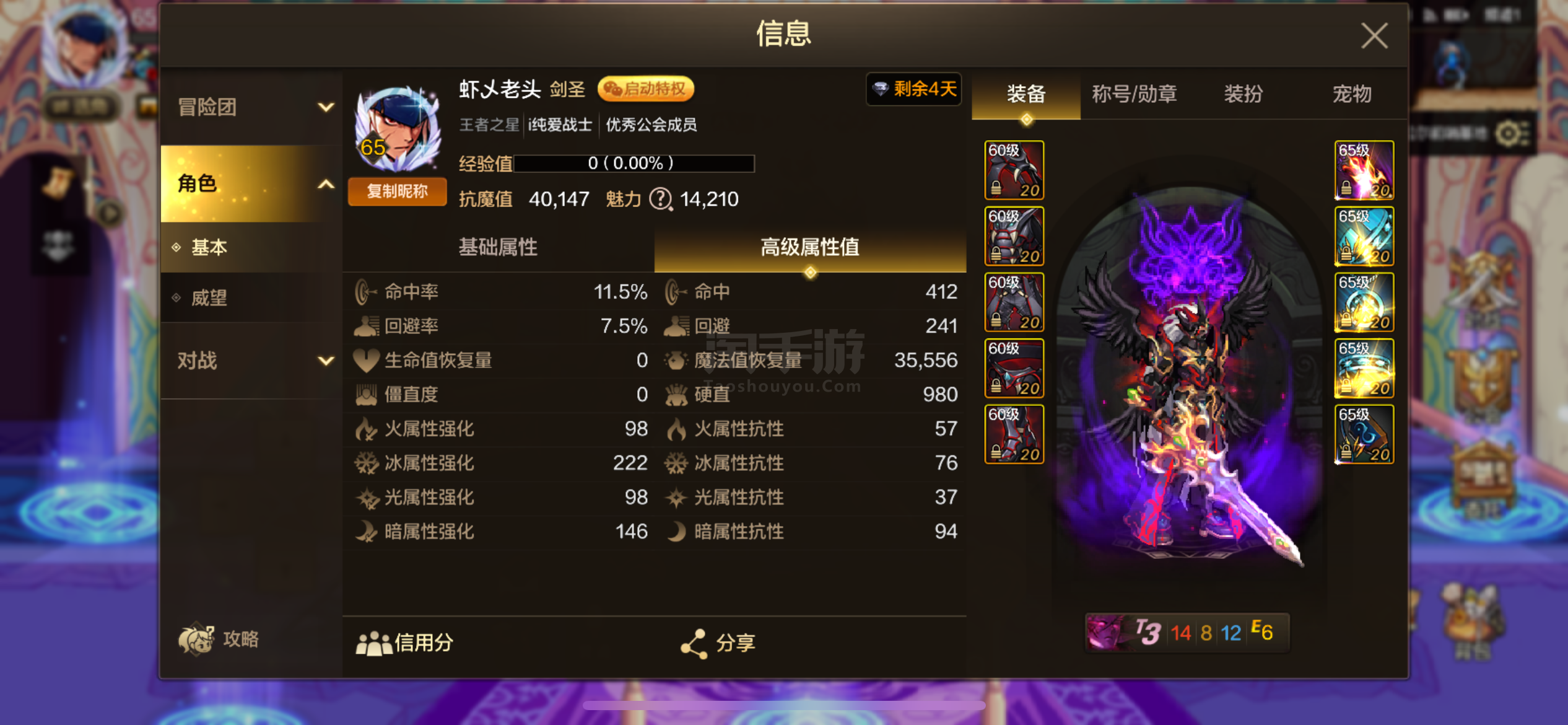 大号银色徽章3个9级普通徽章5个10级剩下全部9级属强徽章7+5冰.小号全部白金称号5属强白光环只有3个小号没有没无形4.0以上的号就不一一介绍了基本上都是挺狠的不然到不了