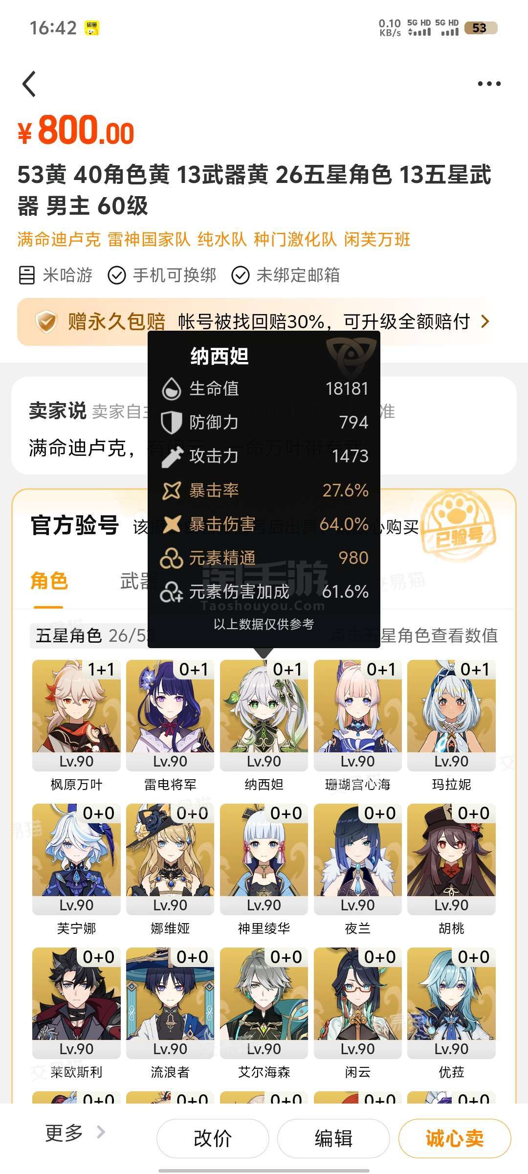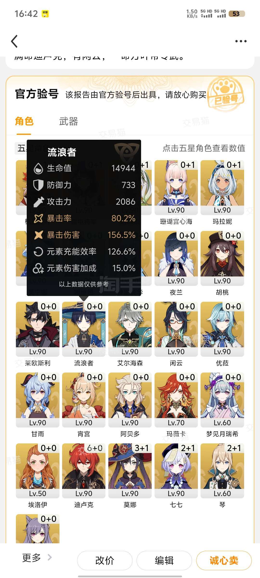 满命迪卢克,一命万叶带专武,有闲云。