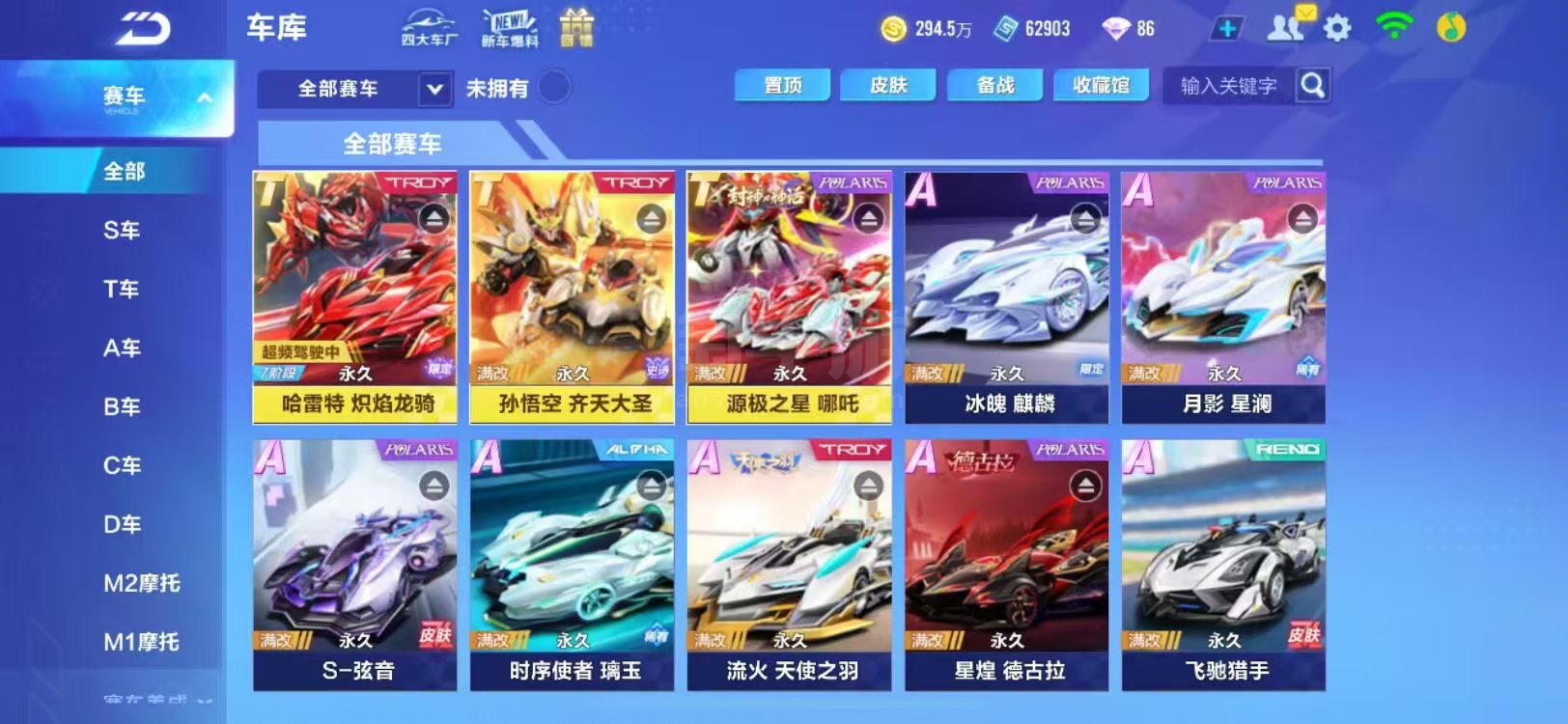 QQ飞车手游【苹果QQ】512果q三机甲哈雷特赤焰龙骑,茸云。源极大河神卫,孙悟空尘猿。冰魄,幻星,月影,时序,星煌,天行。