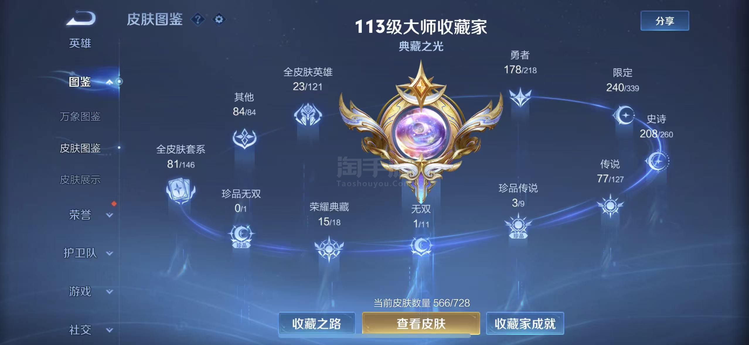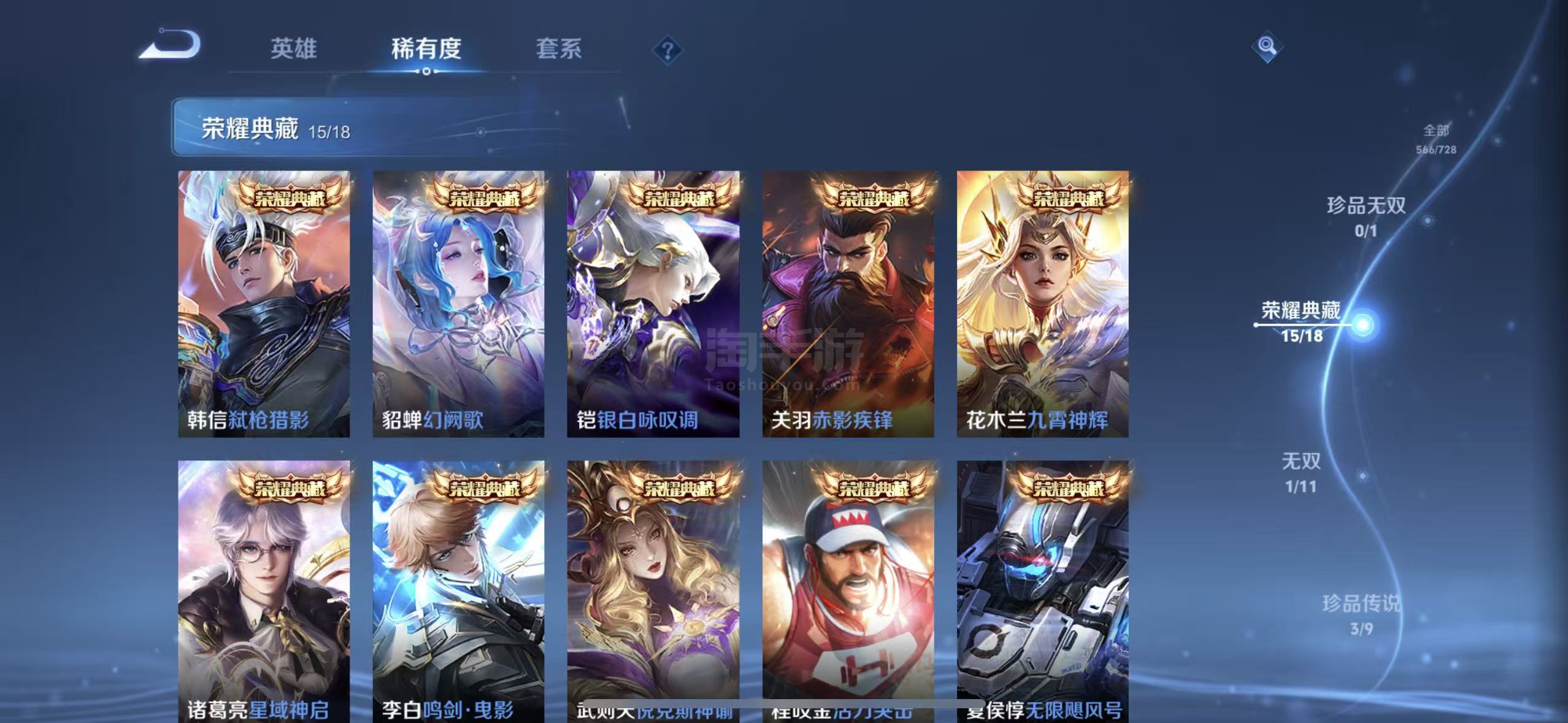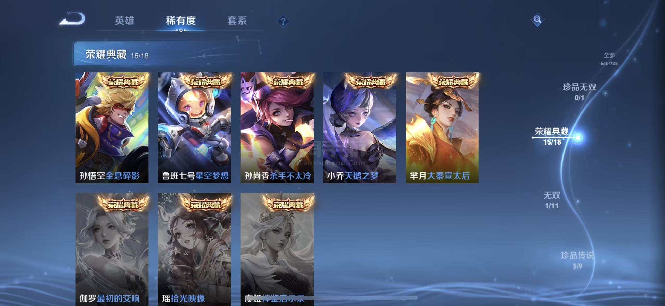 苹果 微信 v10 566个皮肤 15个荣耀典藏 背包还有一颗荣耀水晶 王者荣耀,可二次改名
