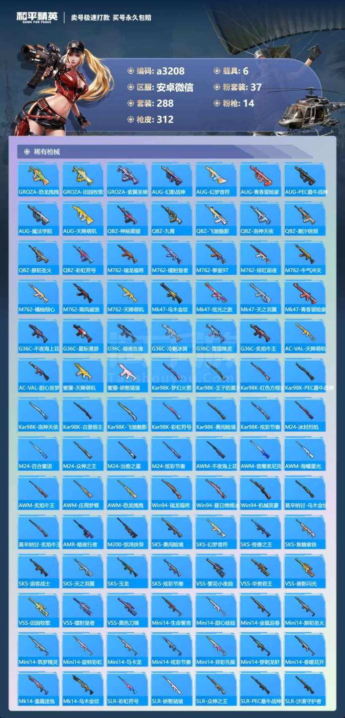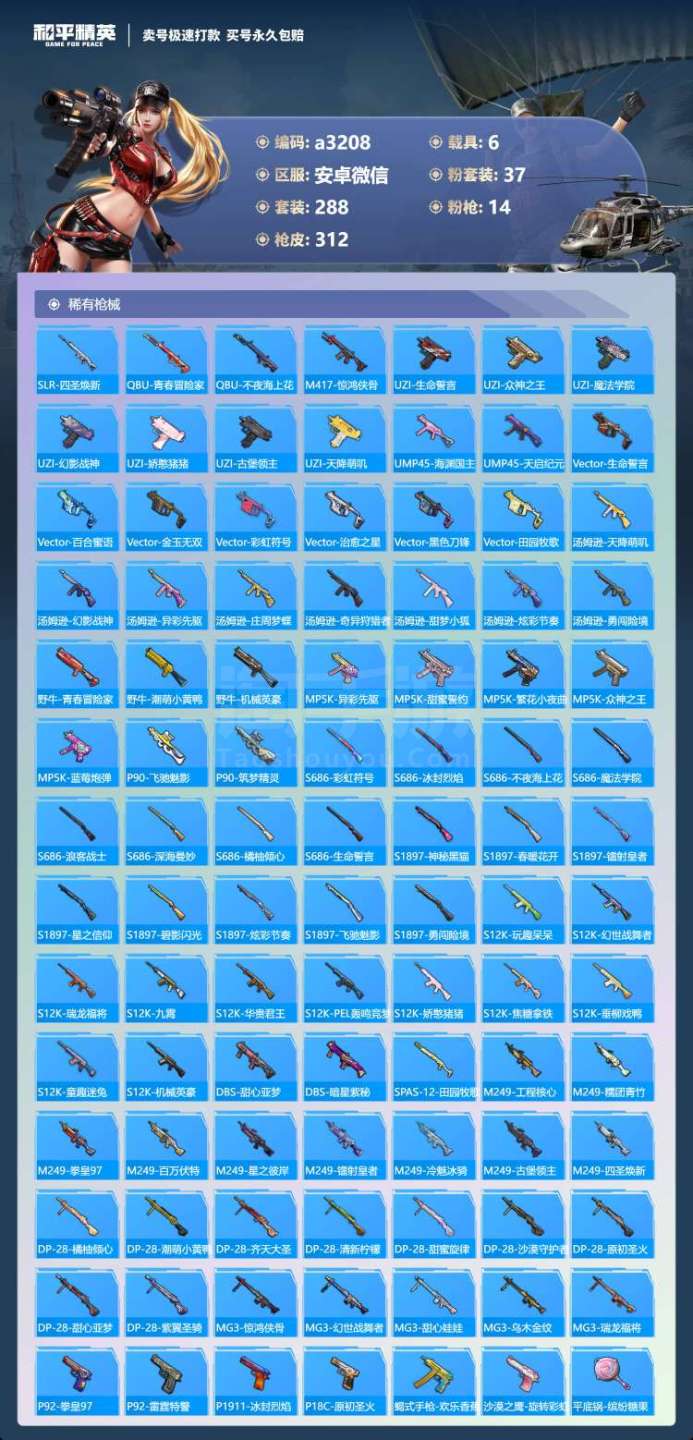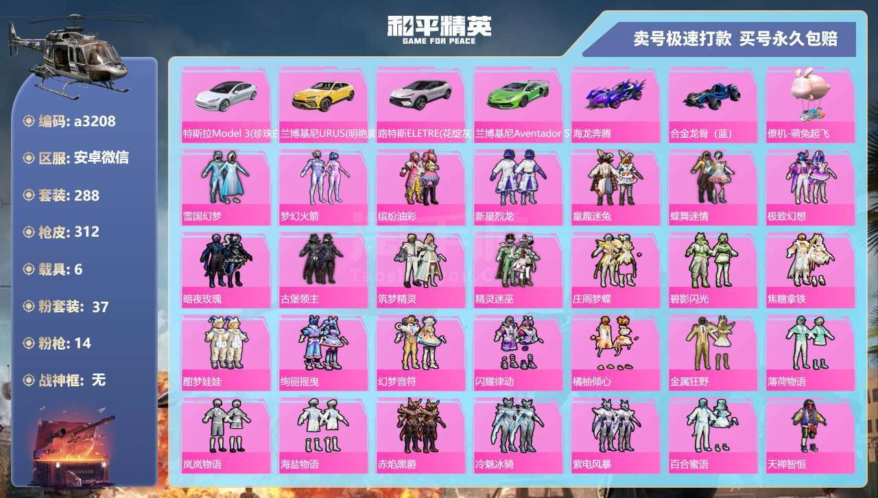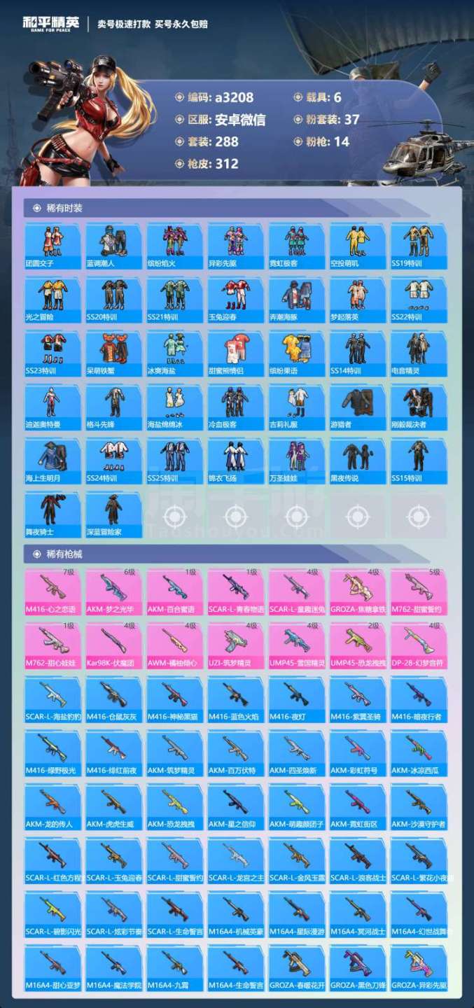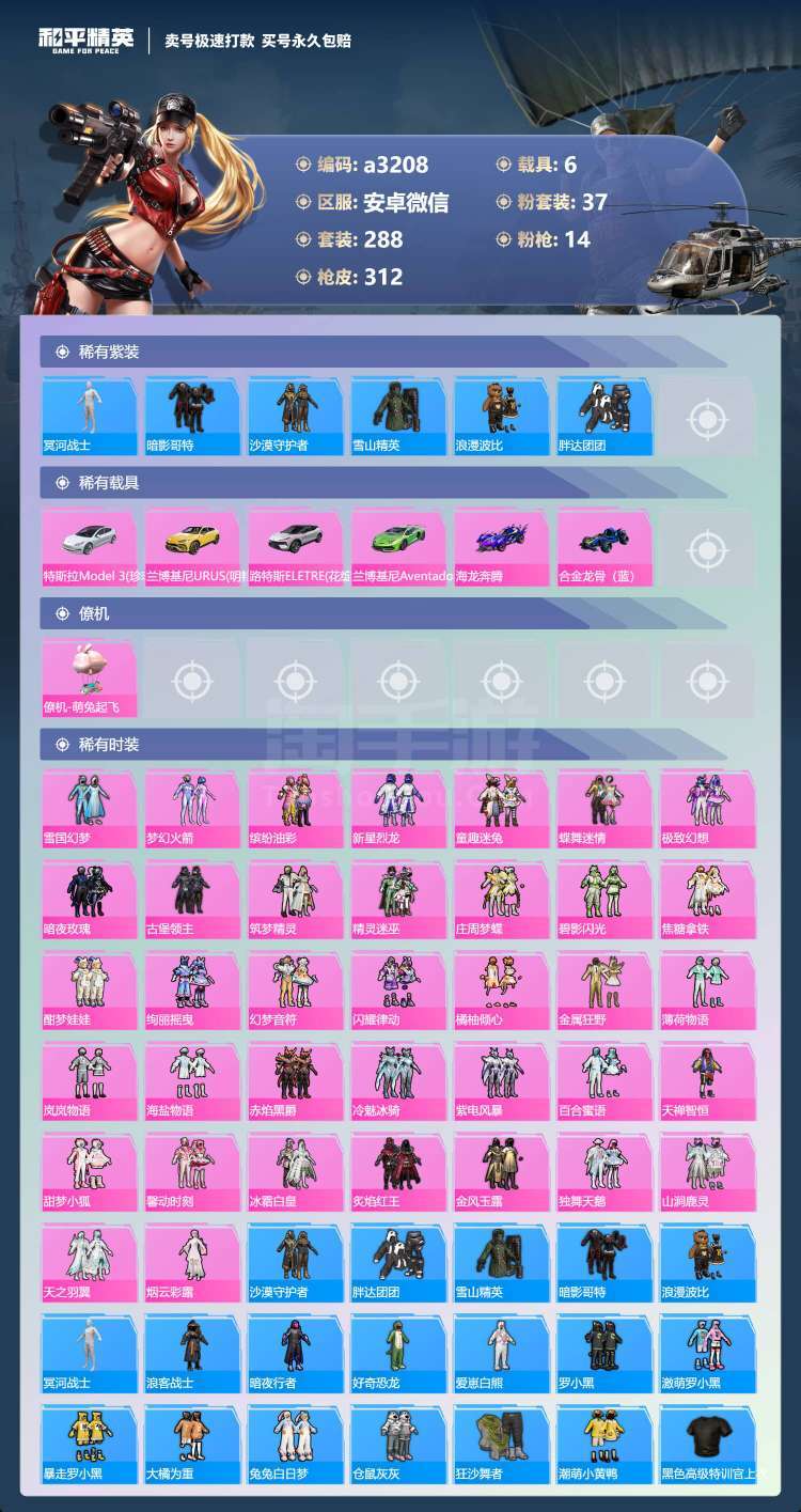 a3208/安卓微/-9王牌印记-37粉装-14特效枪-6载具-132785热力值-288套装-3