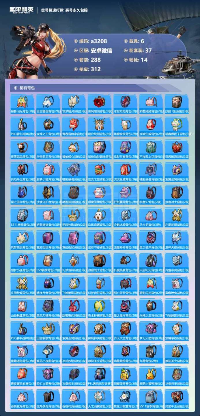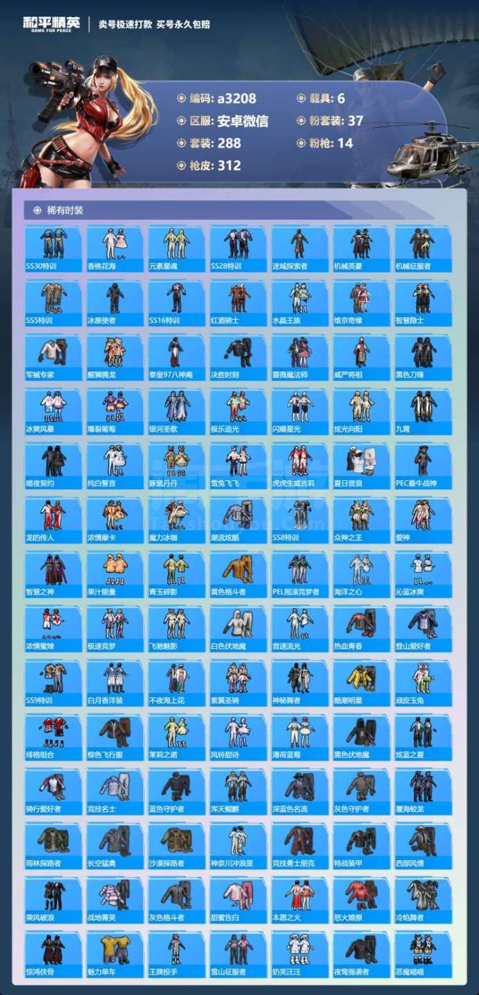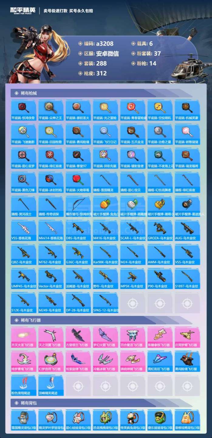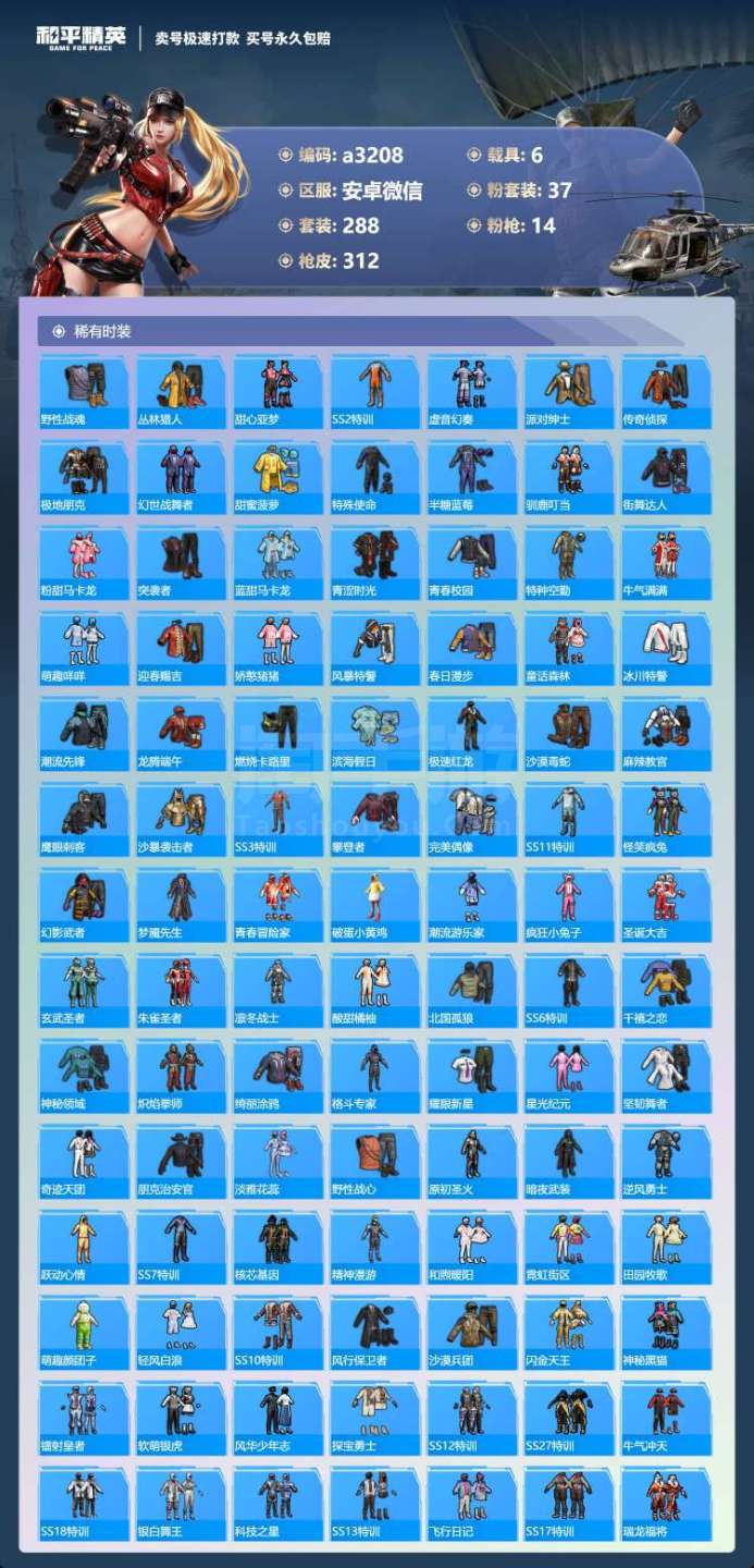 a3208/安卓微/-9王牌印记-37粉装-14特效枪-6载具-132785热力值-288套装-3