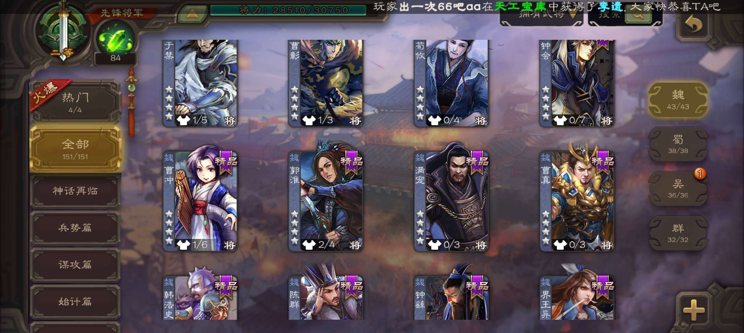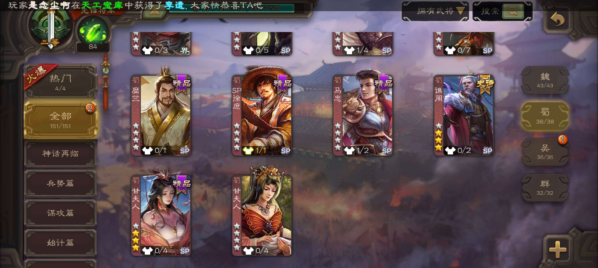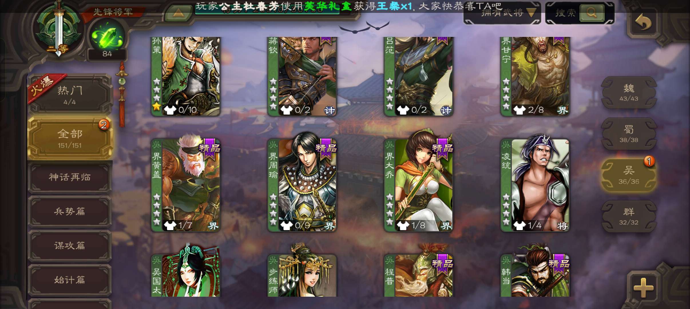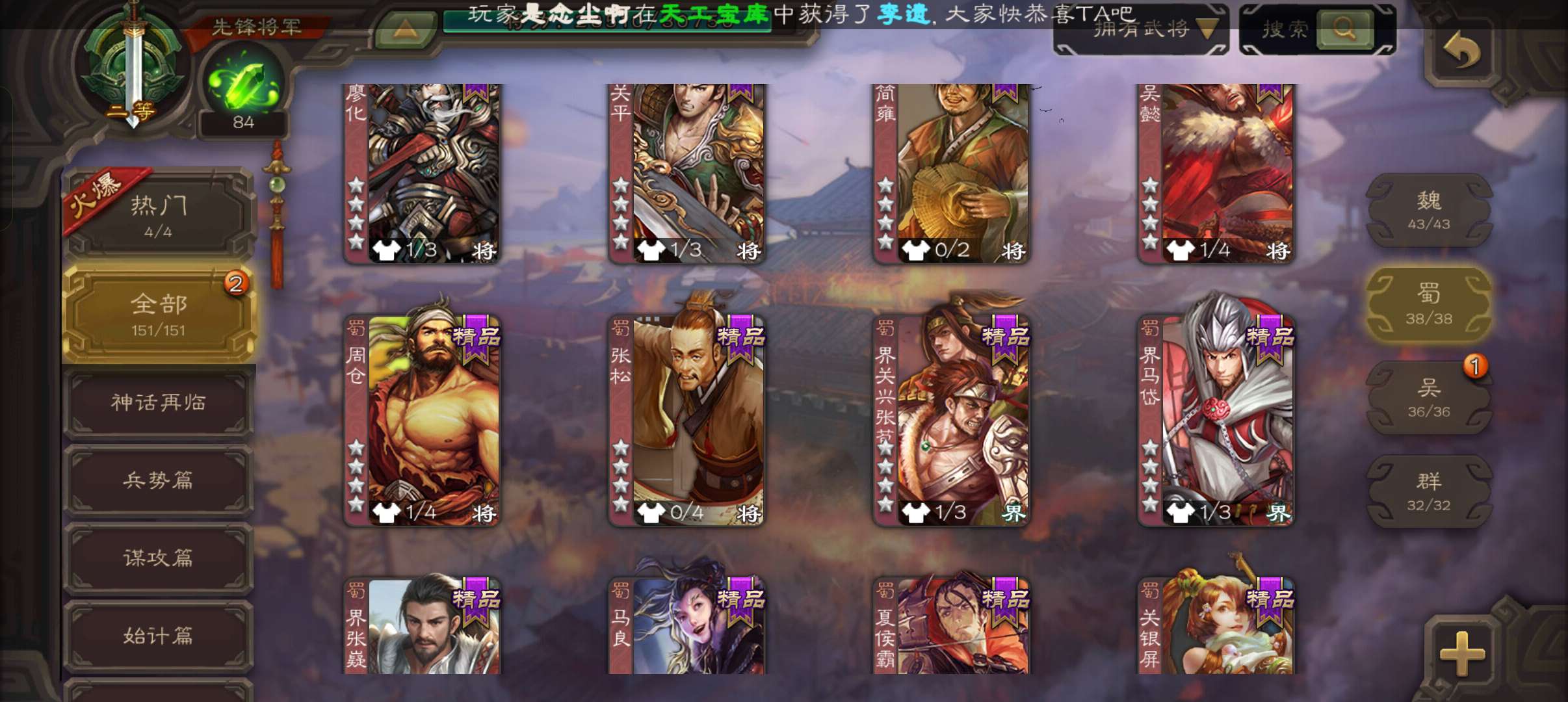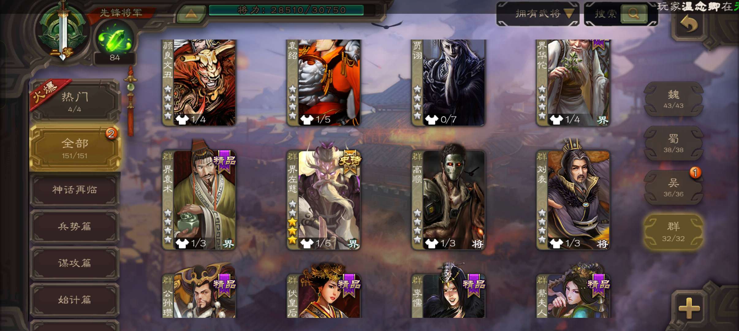 5史诗双神先锋,5万3豆,回廊动态界左慈动态花鬘诸葛瞻谯周贺齐,神周瑜神吕蒙甘夫人贾充151将