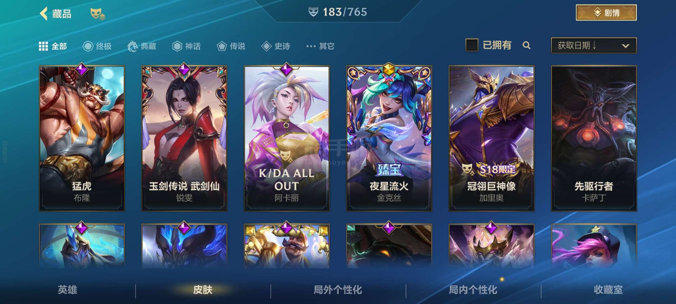 英雄联盟手游(lol)【安卓微信】2 神话 30 传说,77 史诗,可二次实名,有点卷有原石,满英雄,带金铲铲限定神话英雄 T1 永恩