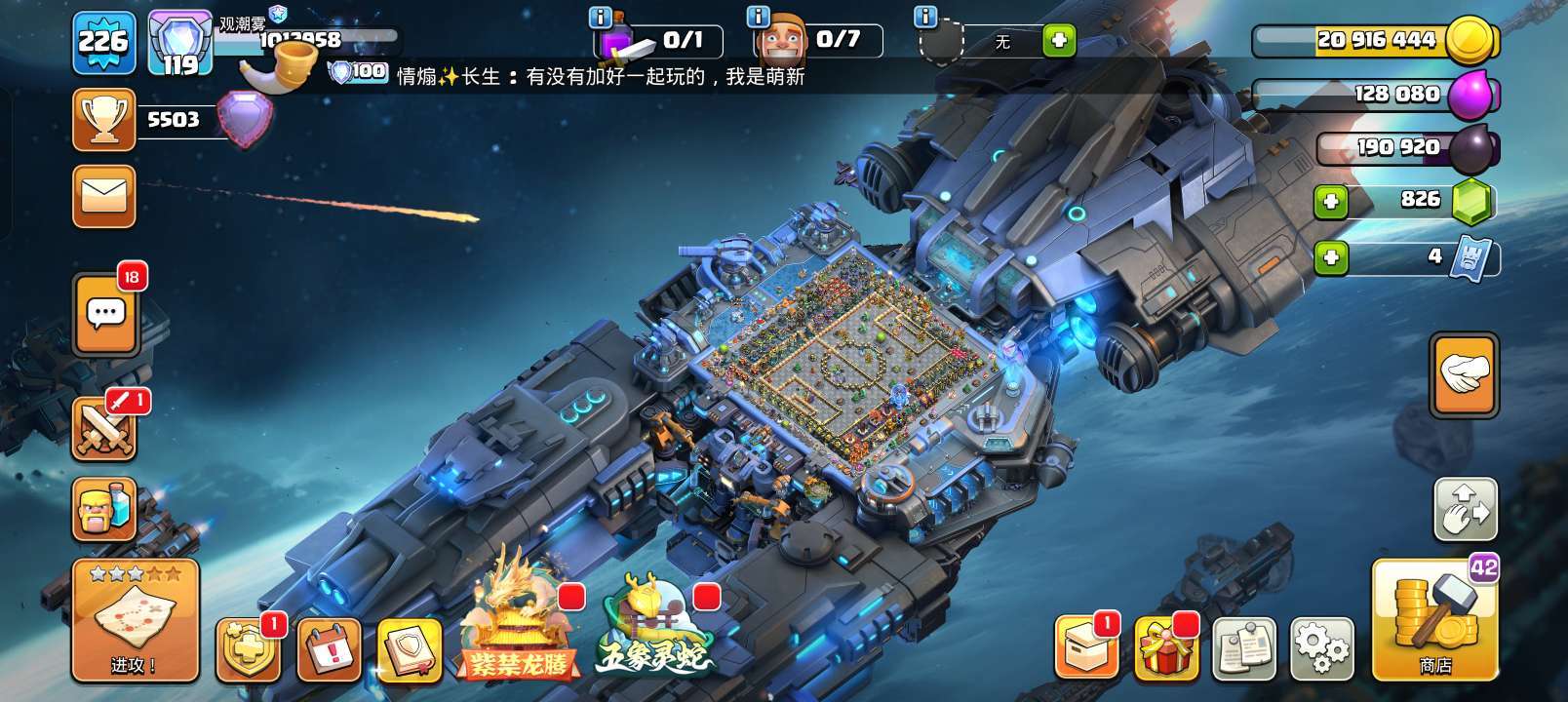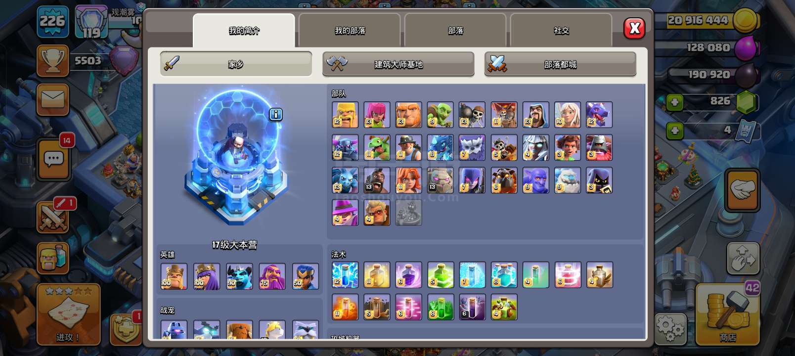 果Q 17本满防,更新后建筑基本上可以秒,夜世界满科技外带英雄皮肤和主世界皮肤特效
