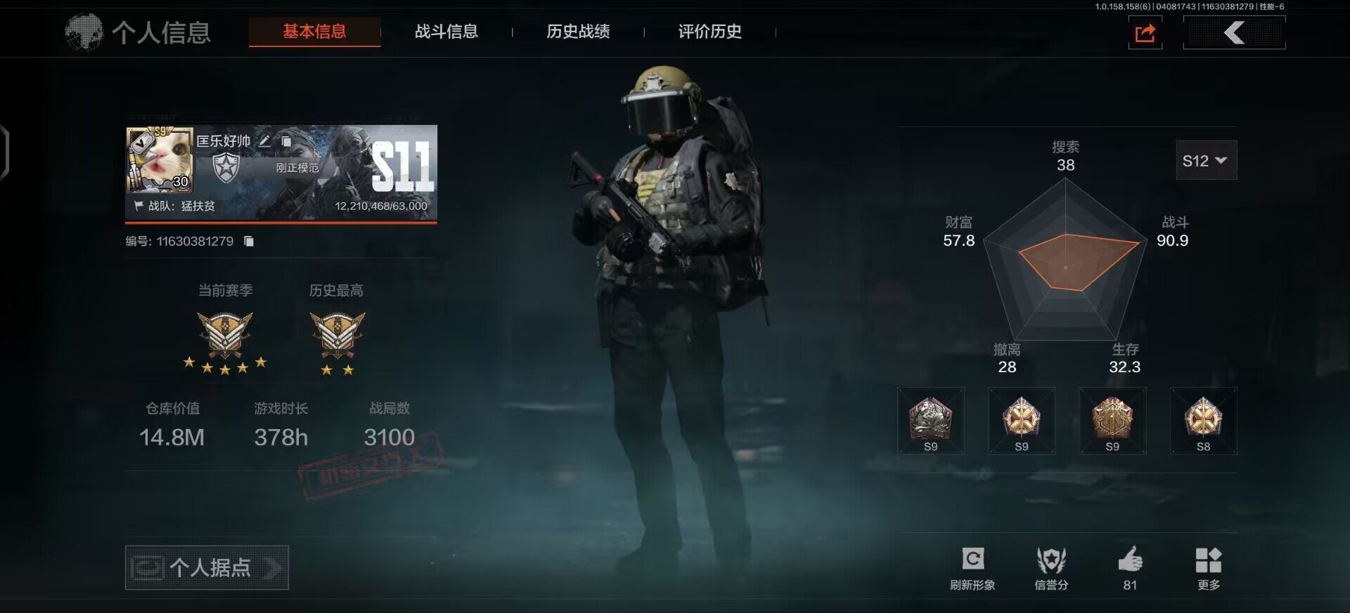 暗区突围【安卓QQ】qq不可二次 总资产 41.3m 科恩比 25m 资产号