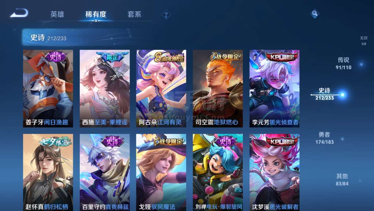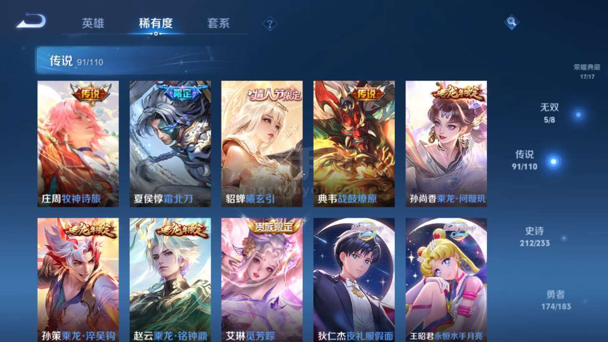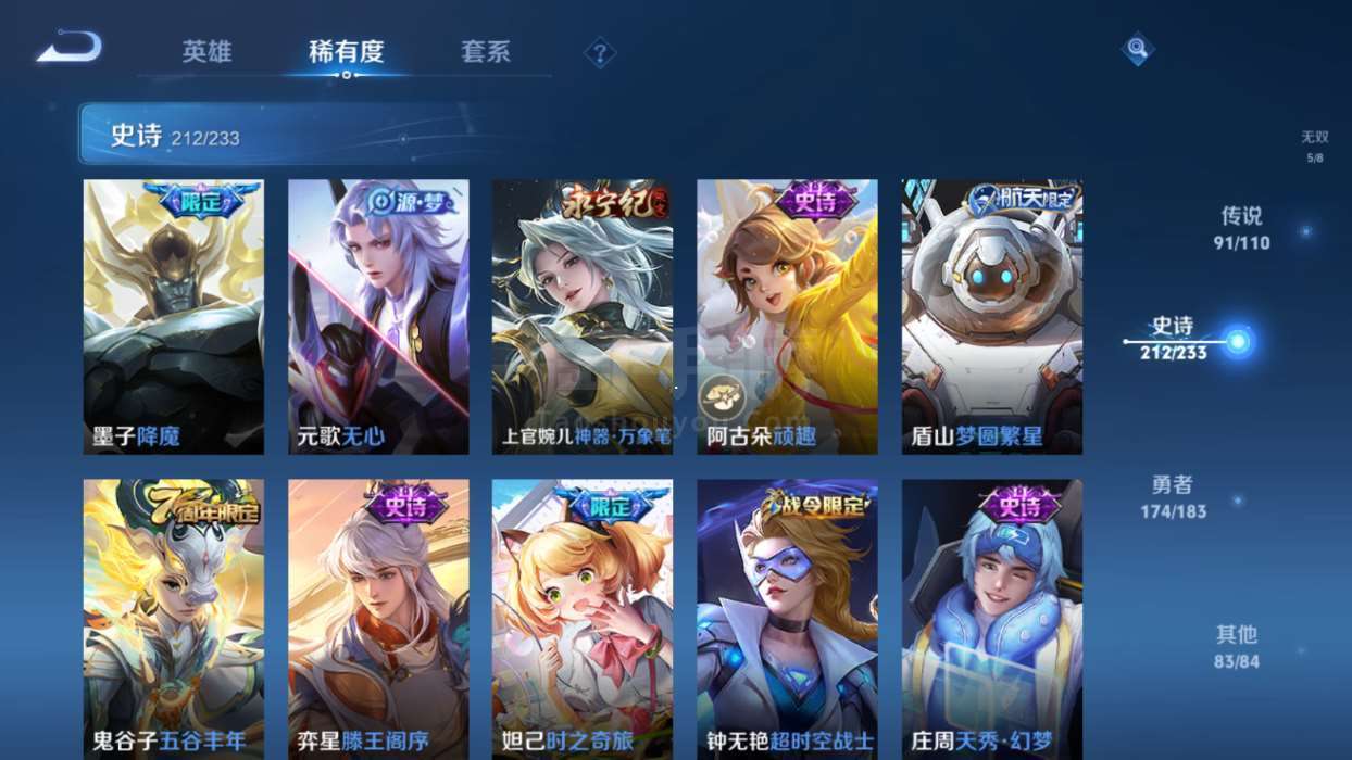【582皮肤】【77w贵族积分】【背包8荣耀水晶】【满典藏】【5无双91传说】【公孙离离恨烟+小乔时