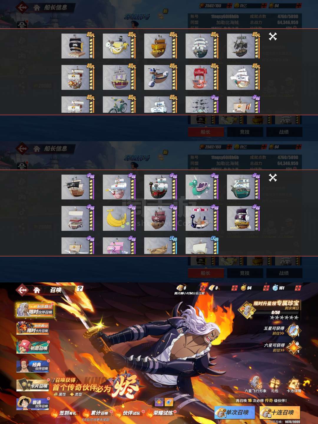 航海王热血航线【安卓官方】6267万战力,66限定7强者4典藏。7400金果,下个限定保底41。27艘船,安全换绑