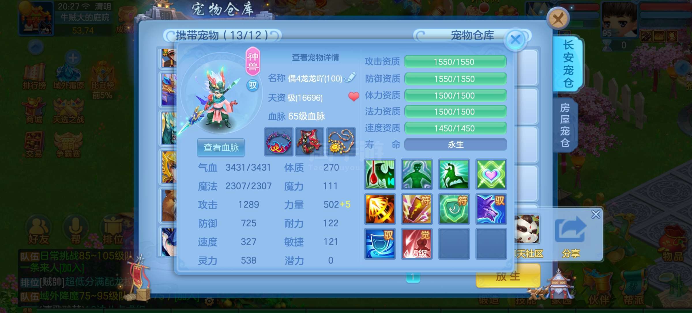 高端魔王,宝宝齐全,10段,5技能玉龙,高级坐骑
