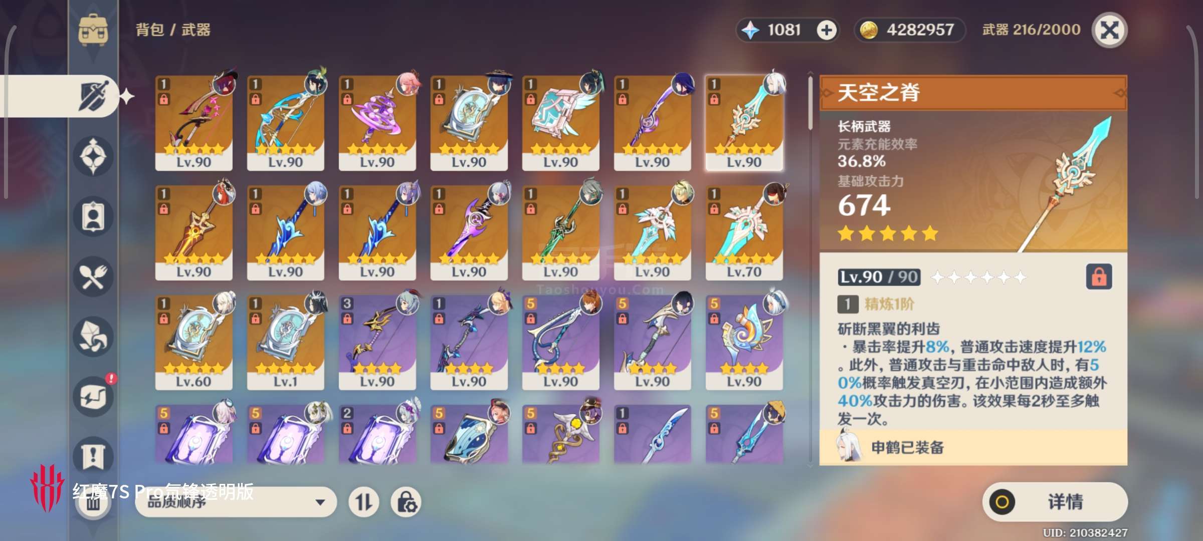 角色61金,武器15金,有胡桃皮肤。高练度,好几个50分元素杯,1仆2万1水1夜4提