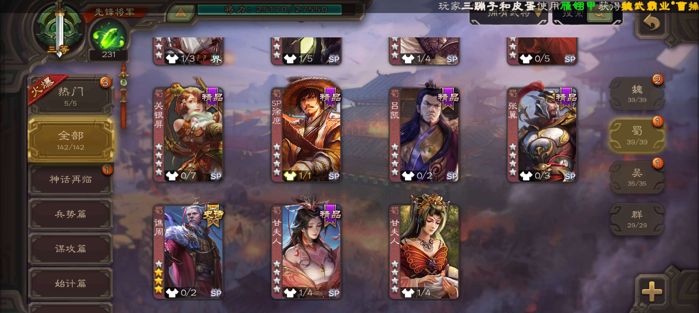 回廊动白马动态花鬘谯周杨修4史诗先锋,谋小乔桥公界满宠关银屏142将