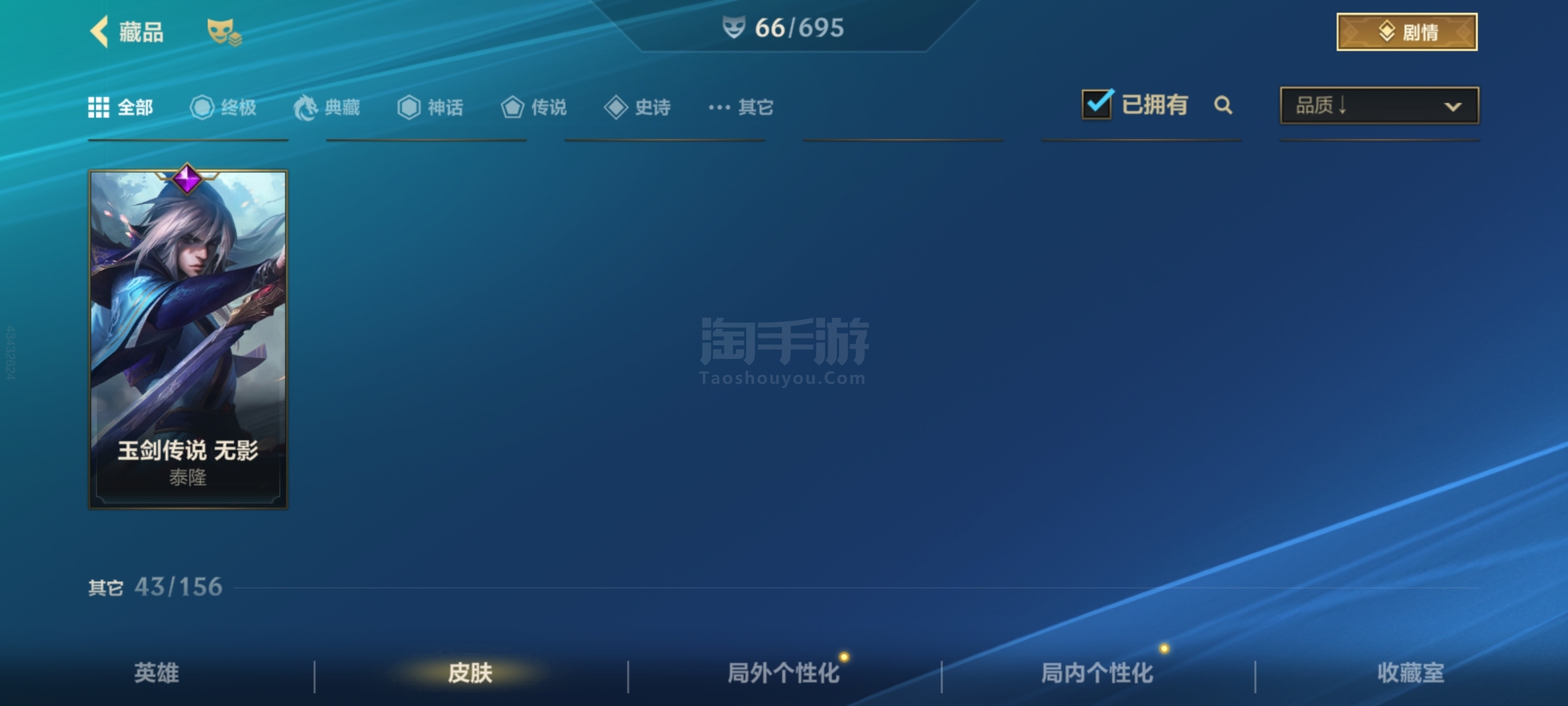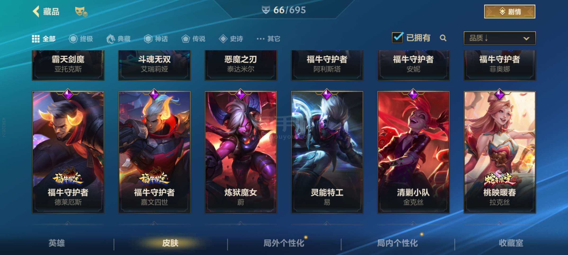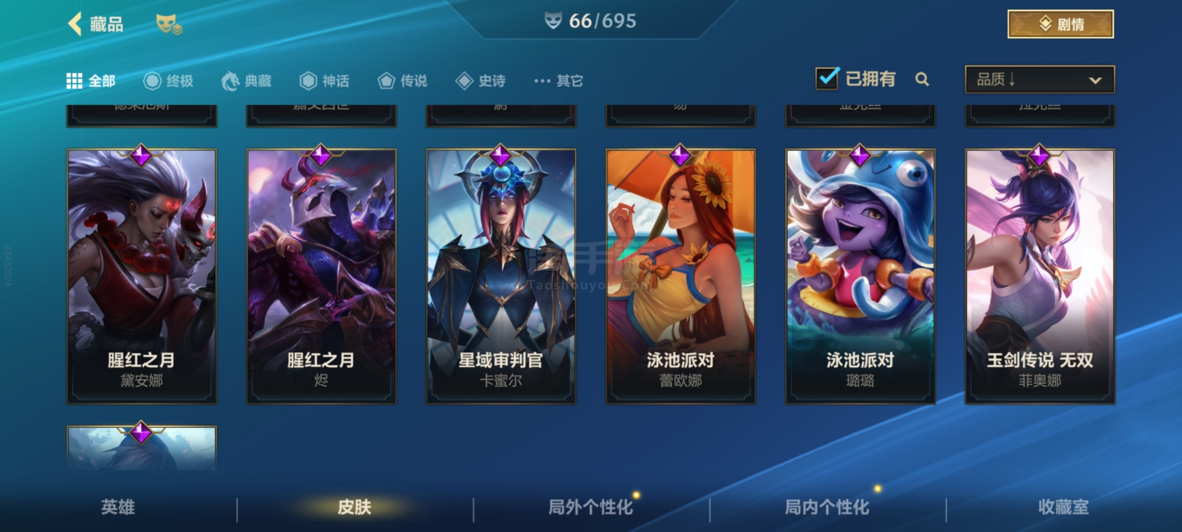 蓝宝石很多,有拉克丝蛇年限定皮肤,御剑男刀剑姬