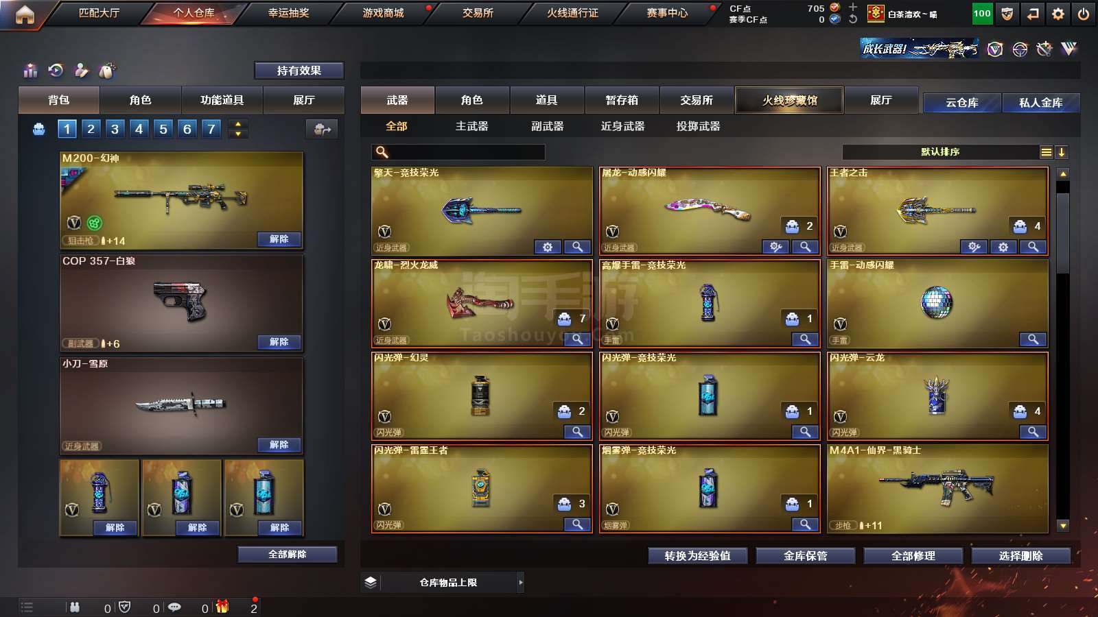 1839069_四川/西部/实名可改/46V10王者5炫金VIP6【主武器类型】 M200-幻神 (世冠白鲨) M200-竞技荣光 6烈龙 Barrett-毁灭 (浙江+音效卡) Barrett-极光 AWM-裁决 王者之魄觉醒版 M4A1-雷神 QBZ03-金色蔷薇 (世冠白鲨) 王者之势觉醒版 M4A1-黑骑士 M4A1-龙血 AK47-火麒麟 AK47-无影 无影-波塞冬 黑武士-锦绣游龙