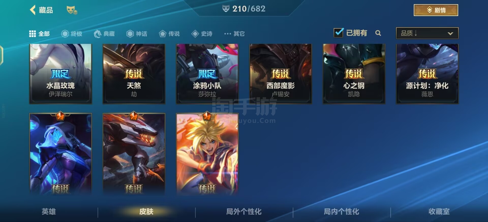 qq区可二次 皮肤210 传说21 史诗104 水晶玫瑰套