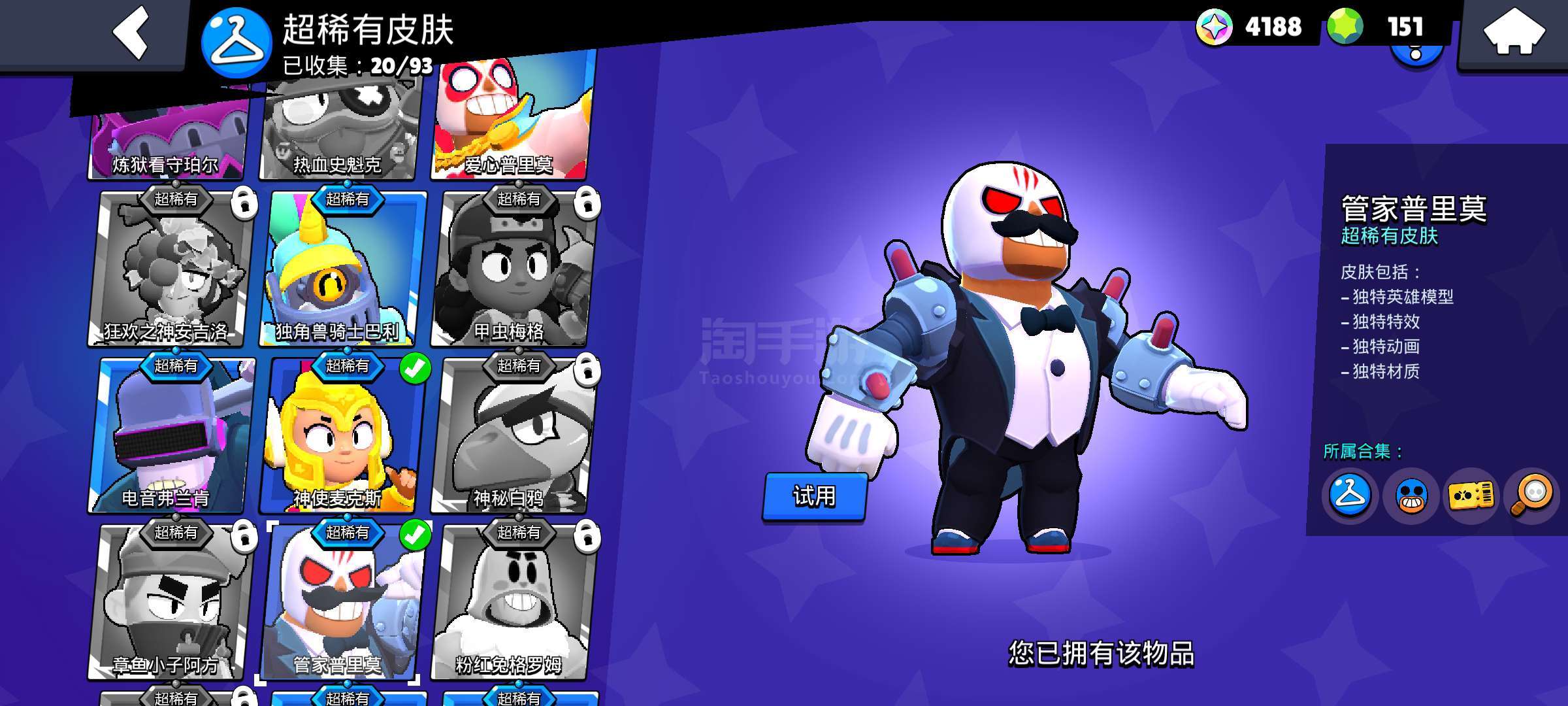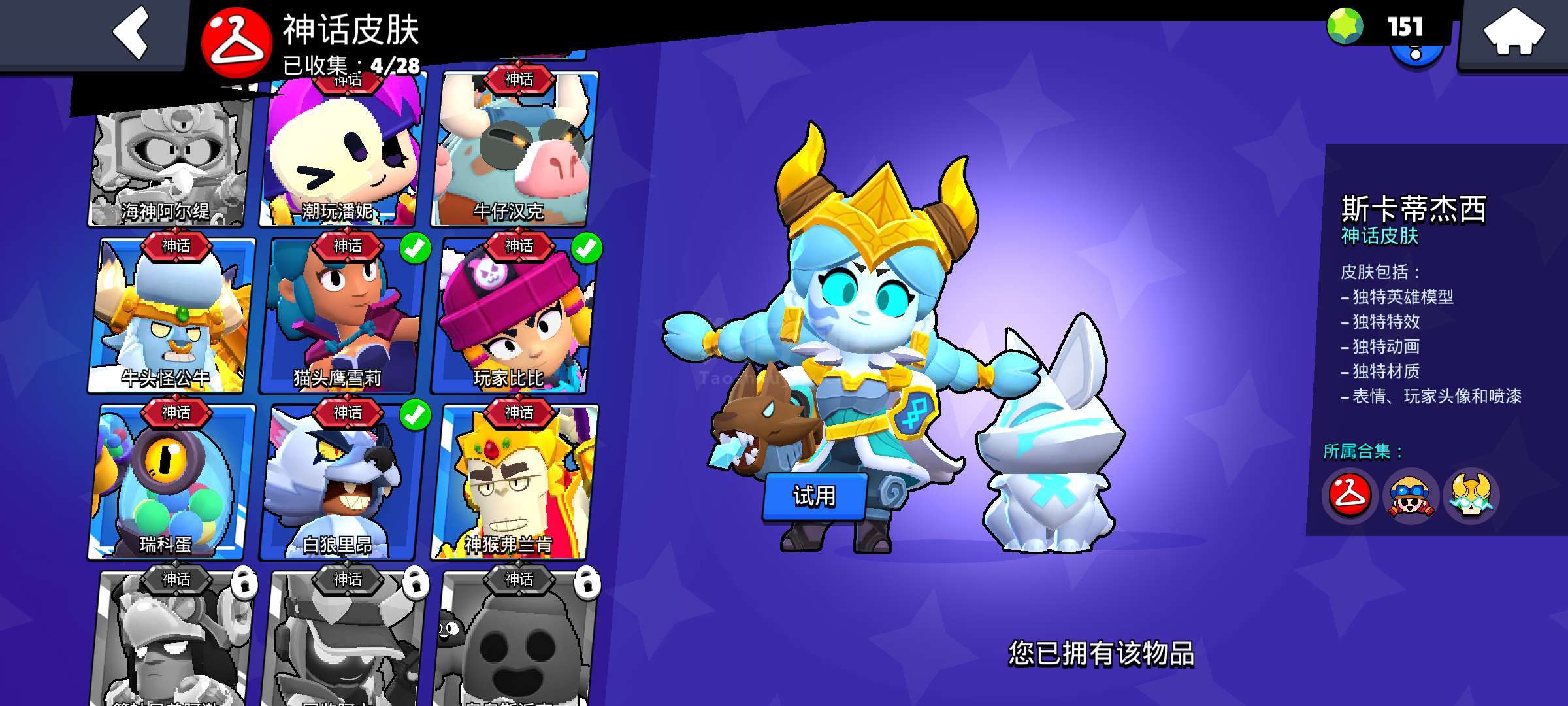 荒野乱斗【安卓QQ】有150宝石,开了一个赛季手册有少量绝版皮