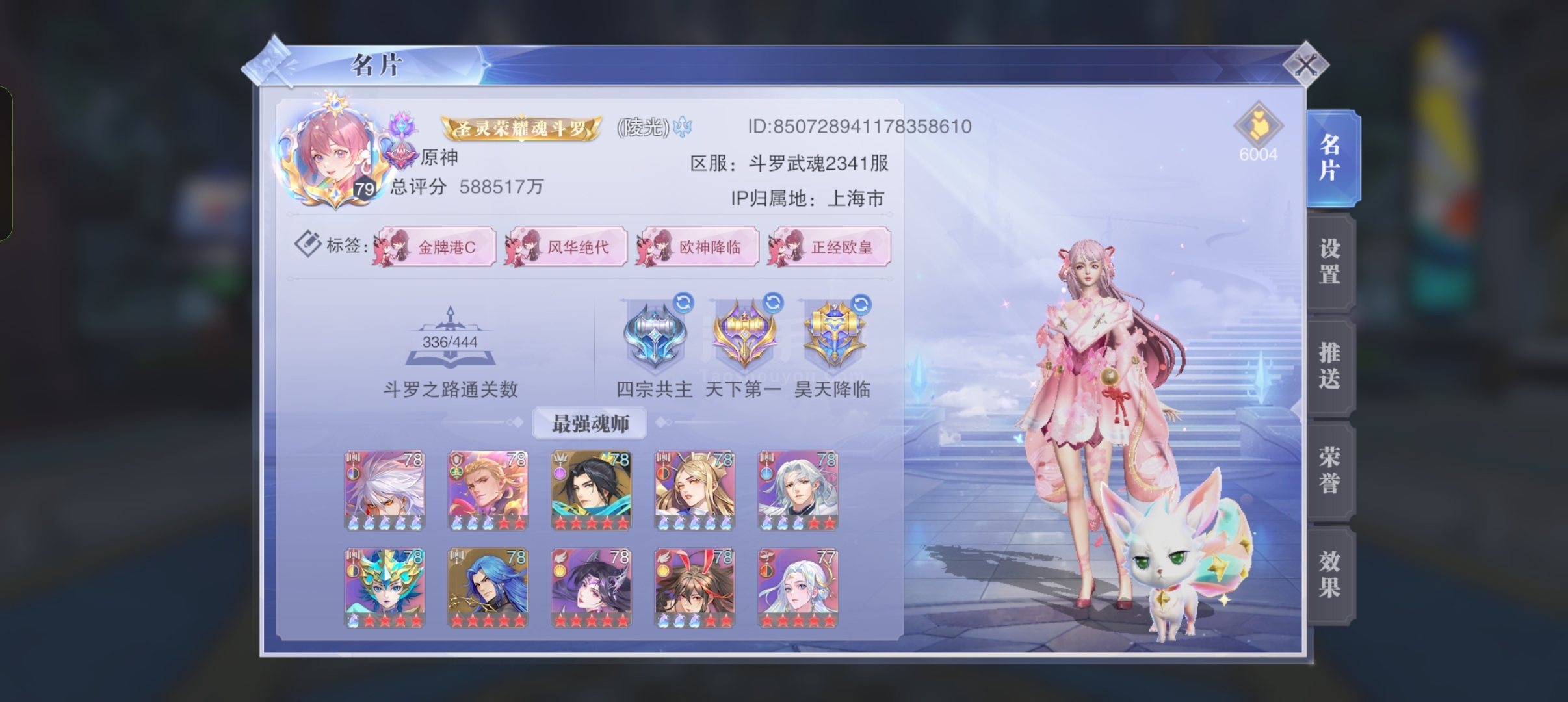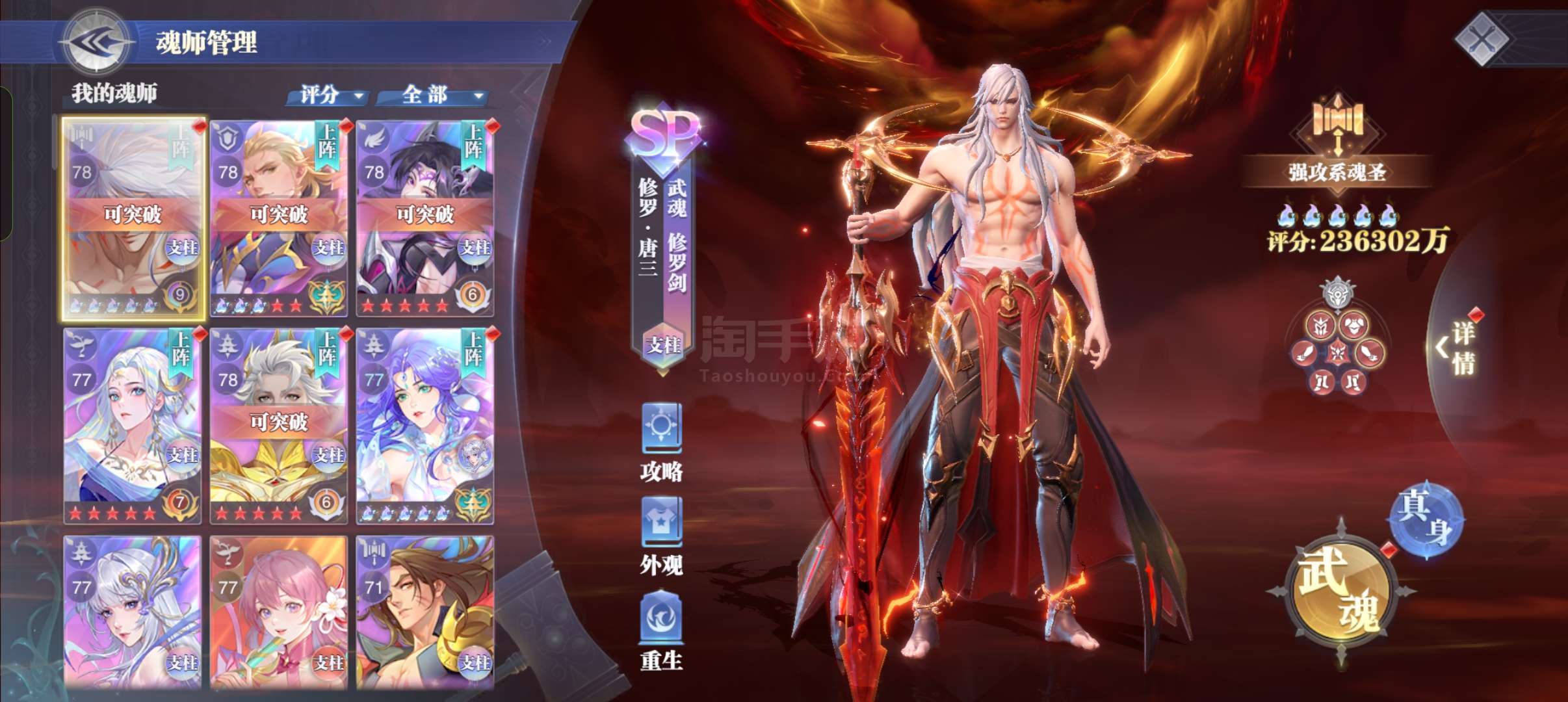 63亿战力,21SP魂师,修罗神唐三皮肤,剑道尘心皮肤,千道流皮肤,九宝琉璃塔皮肤等