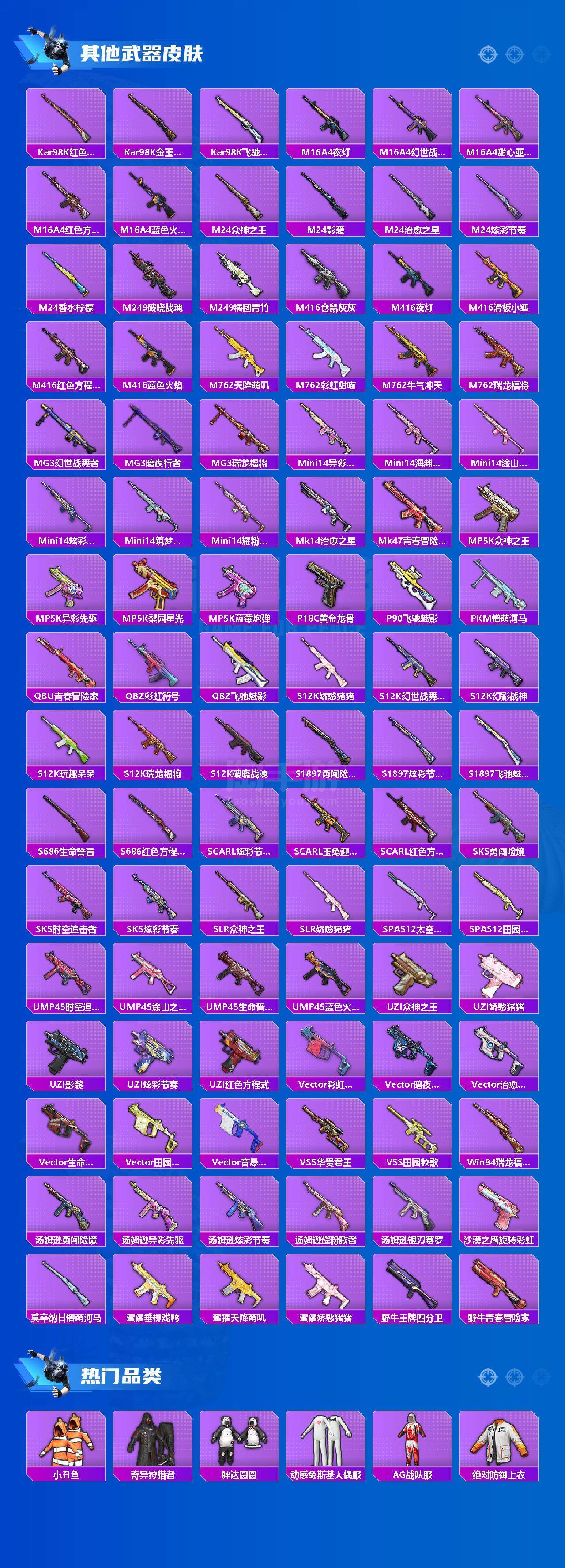 【特效枪等级】:SCAR-L-青春物语(七级SCAR-L-青春物语),GROZA-镜光银凌(五级GROZA-镜光银凌),AUG-暖羊咩咩(五级AUG-暖羊咩咩),Kar98K-巳巳如意(五级Kar98K-巳巳如意),M24-翩跹演武(七