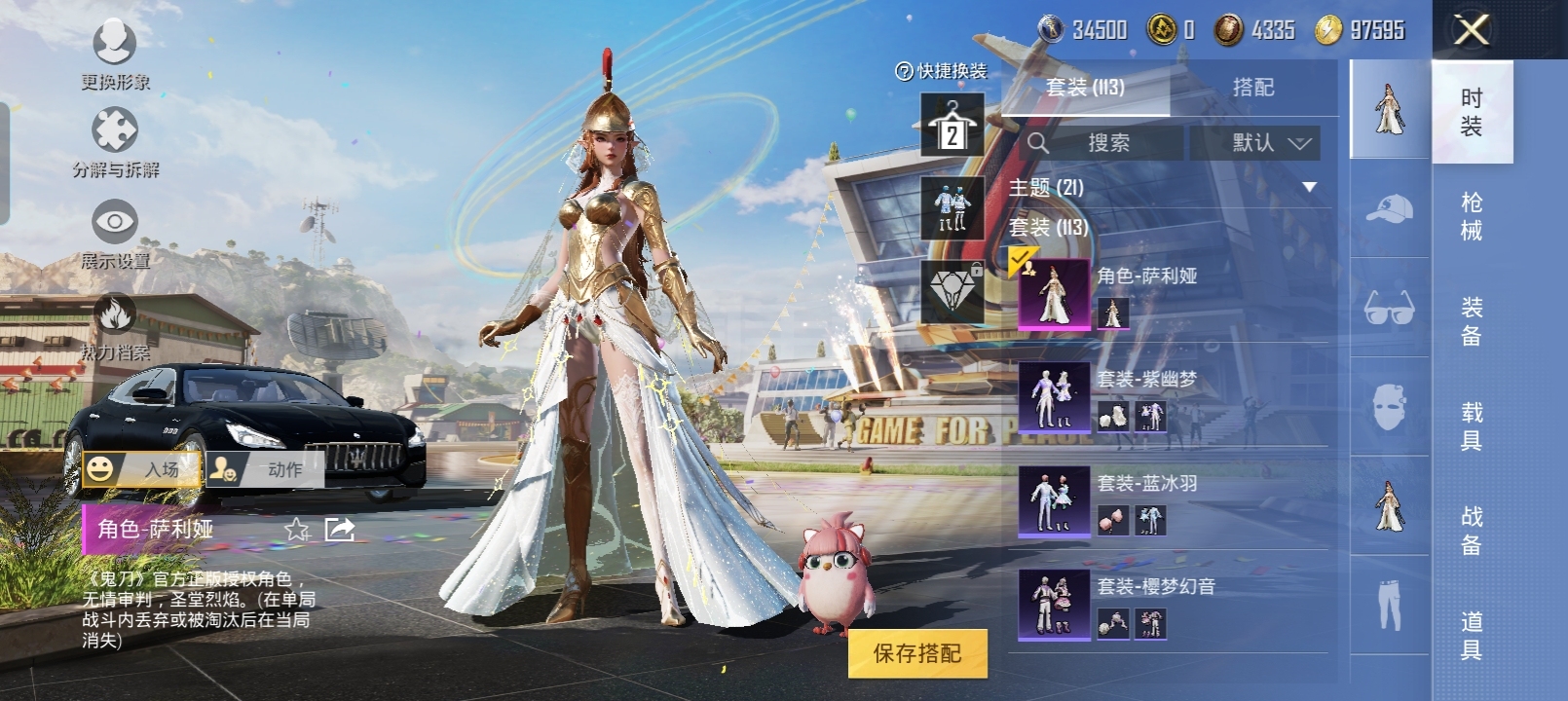 120个皮肤,130个枪皮一个粉装三把特效枪一辆车皮
