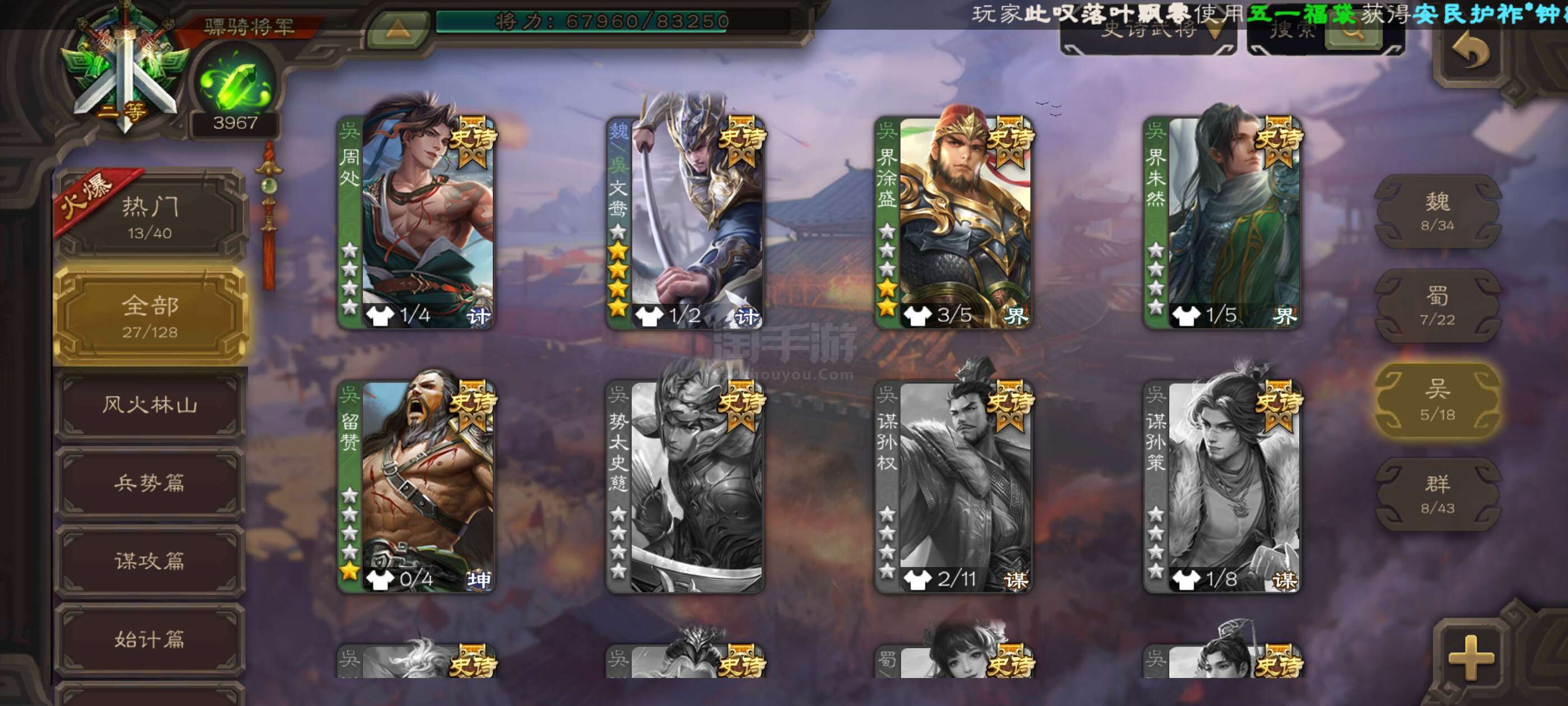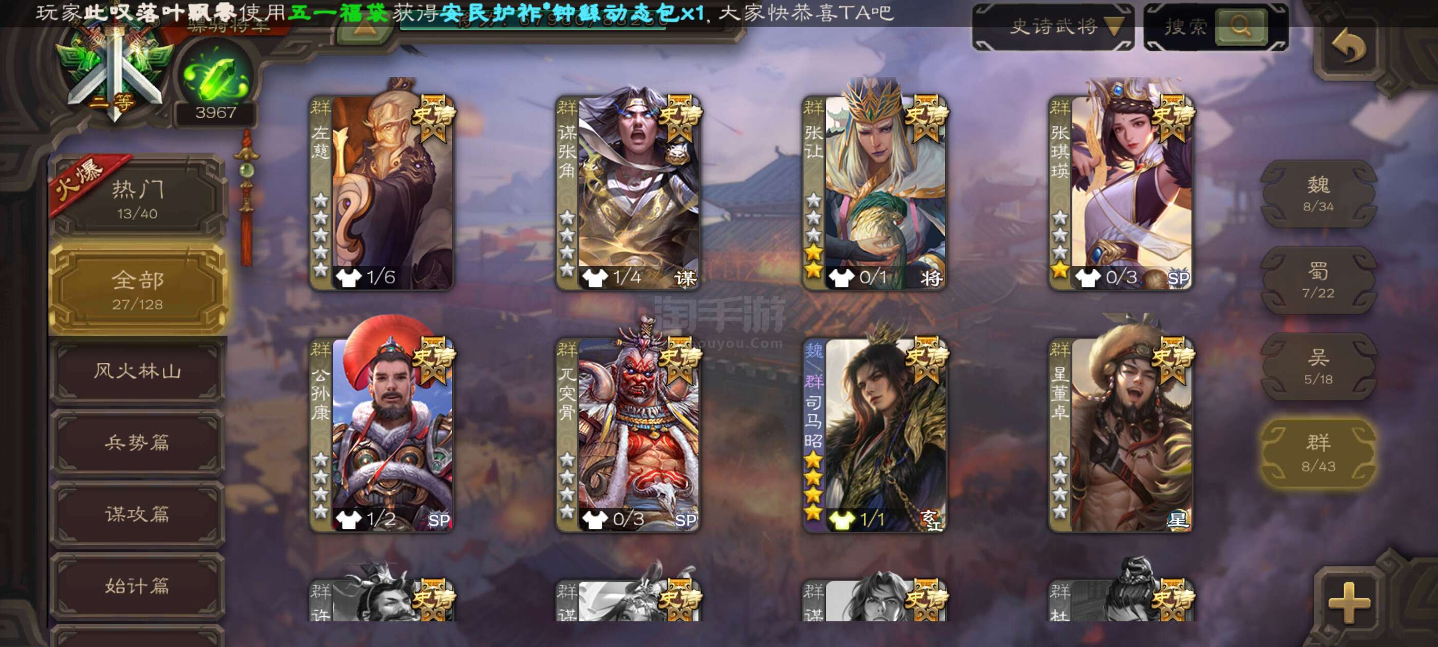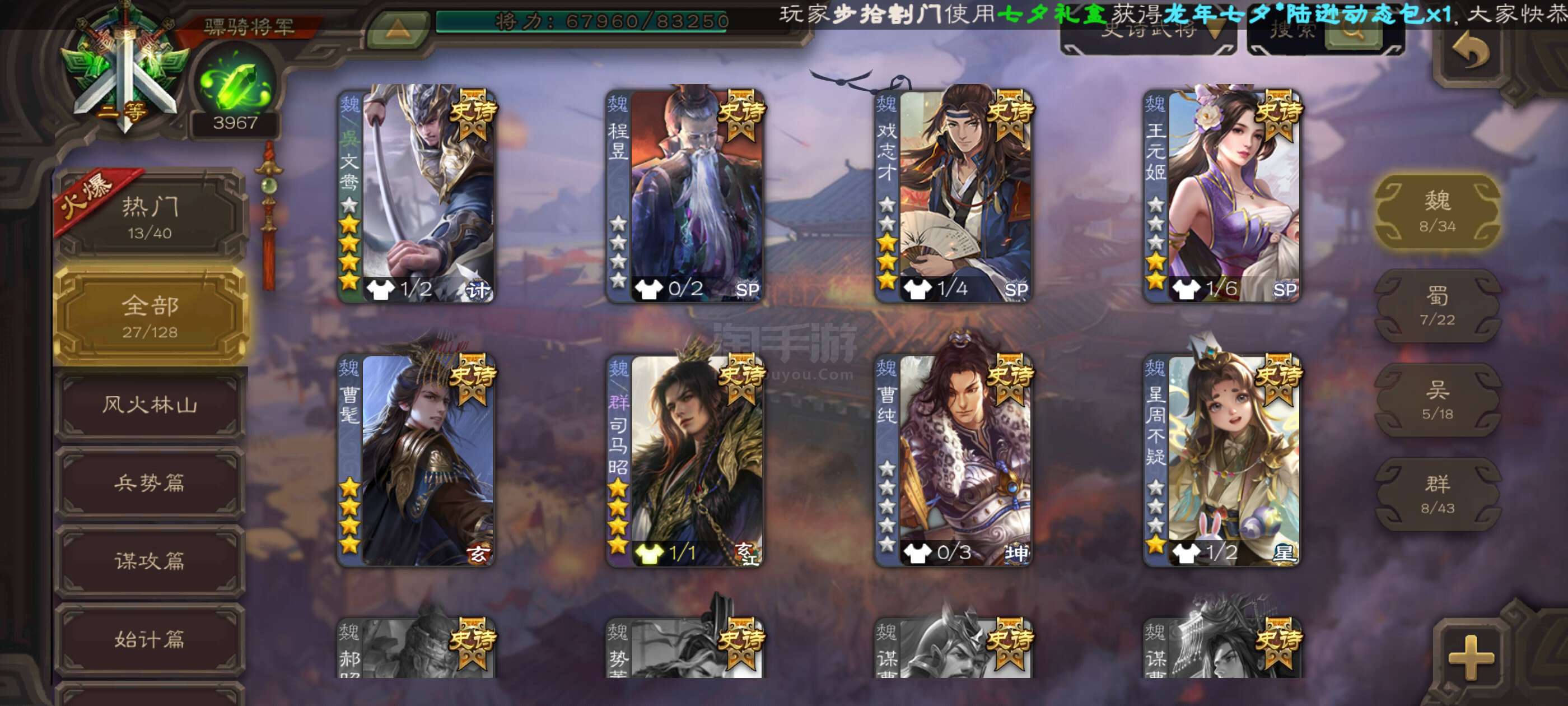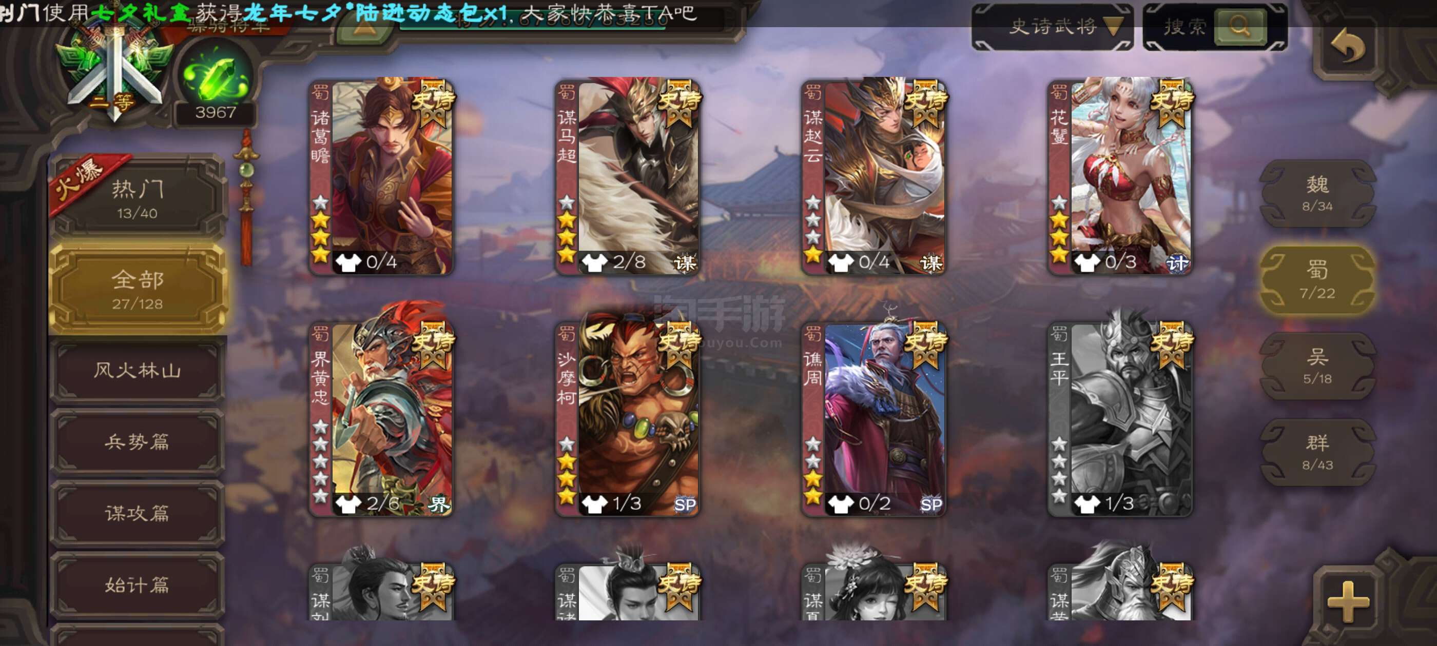 史诗武将数量:
