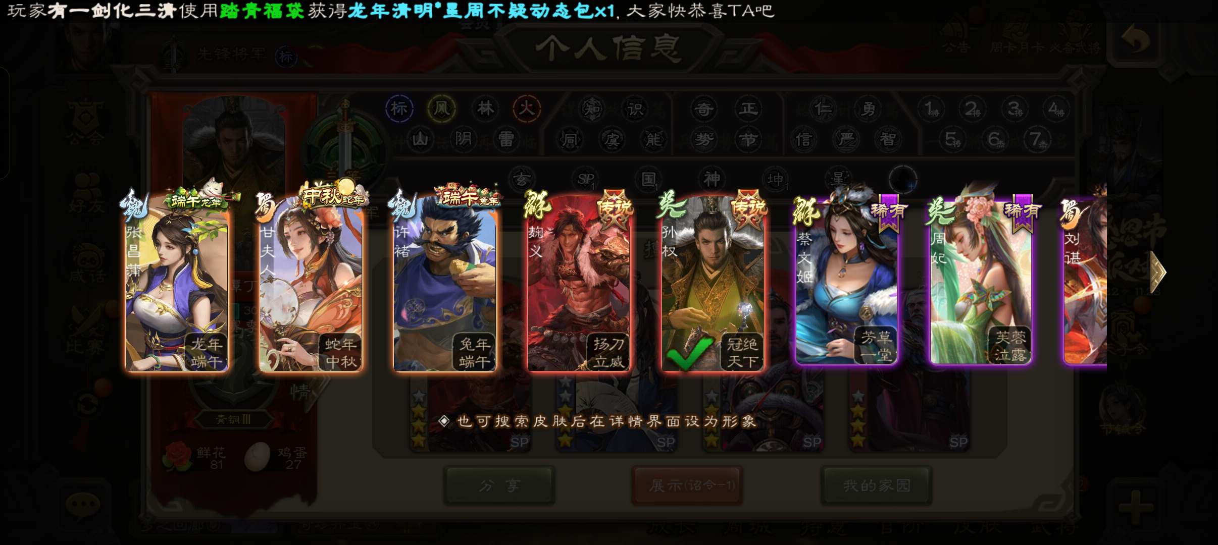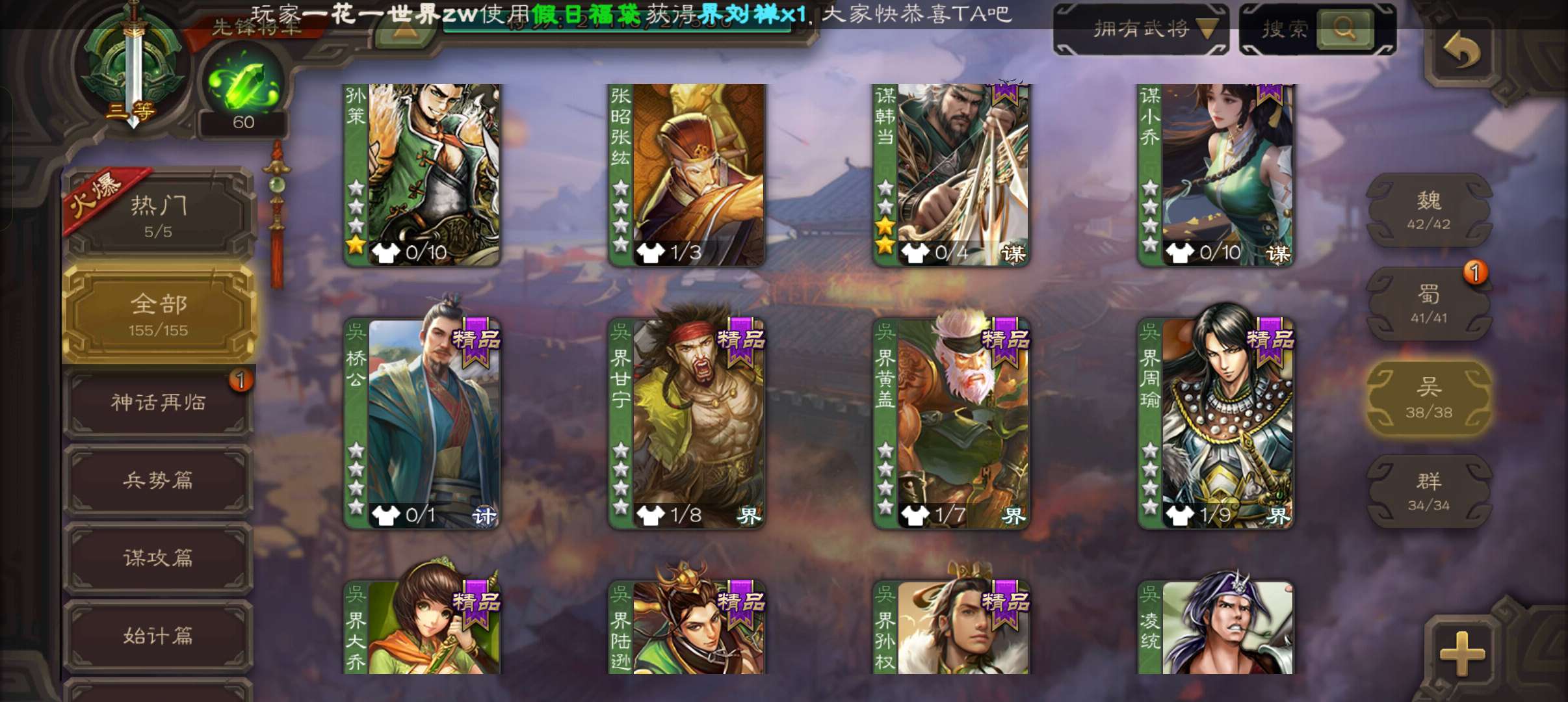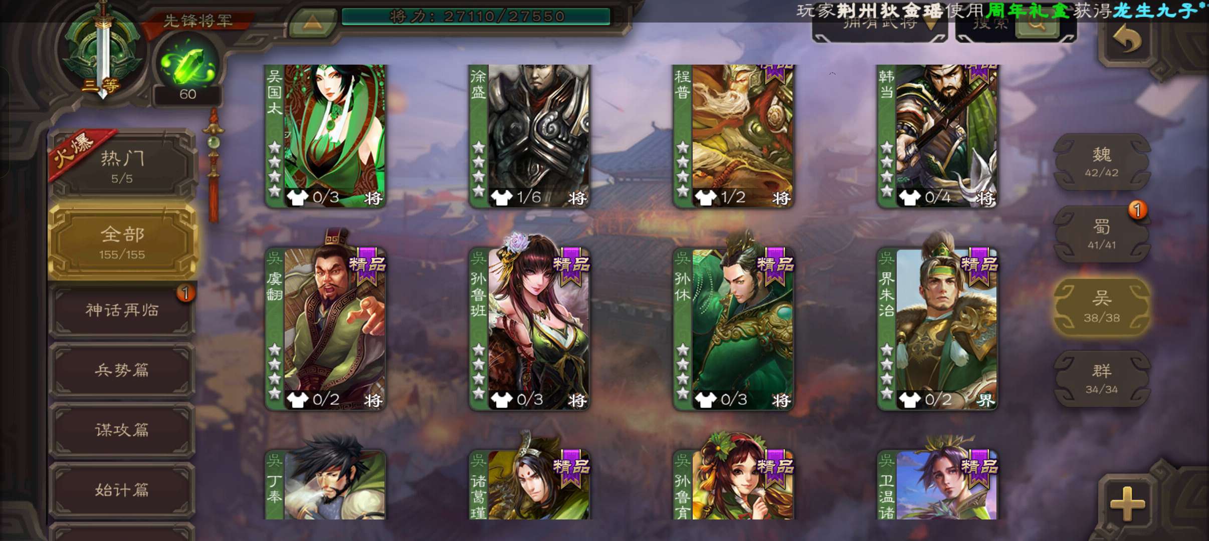 冠绝天下界孙权,回廊动白马戏志才公孙康谯周4史诗先锋,神吕蒙动甘夫人动界许褚谋小乔谋韩当155将