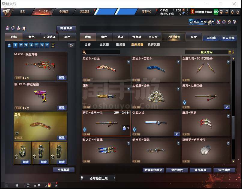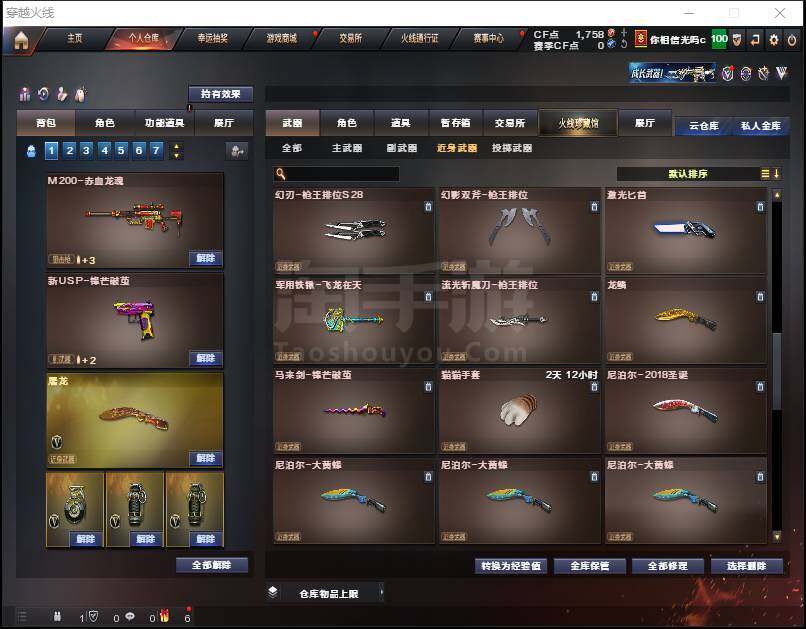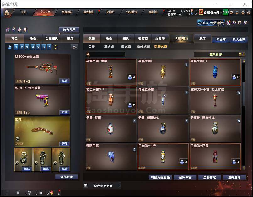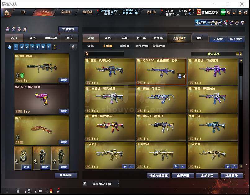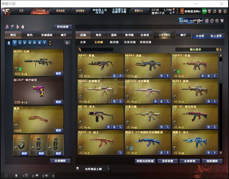 【热门武器】:QBZ03-金色蔷薇,HK417-朱雀,M200-幻神,死亡之眼,C.A.T,加特林-炼狱*2,M4A1-黑骑士,RPK-盘龙,沙鹰-修罗*2