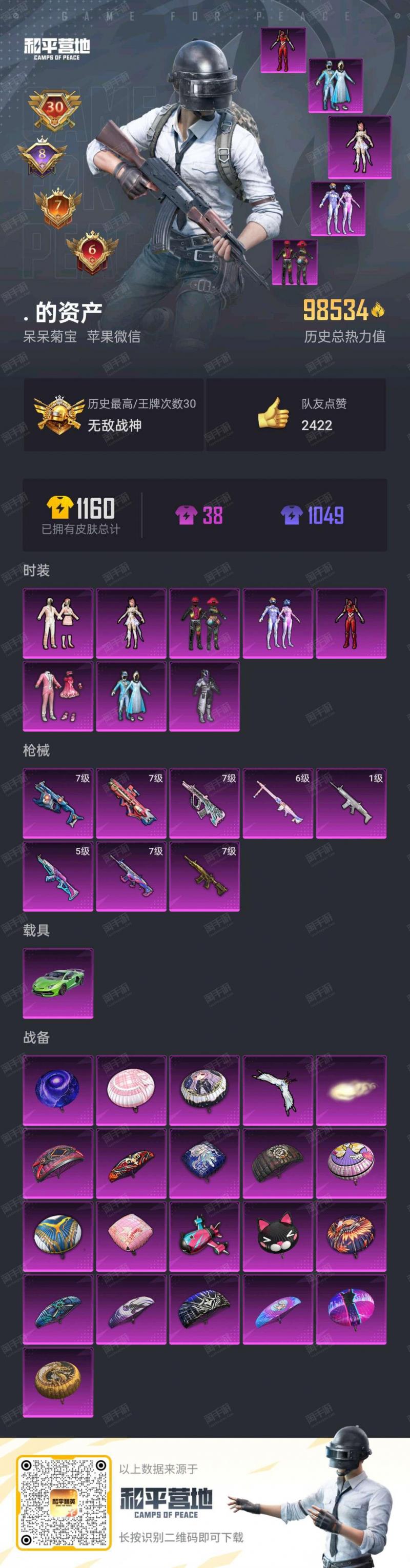 和平精英【安卓微信】a3311/安卓微/-6王牌印记-4粉装-17特效枪-1载具-53731热力值-72套装-132枪