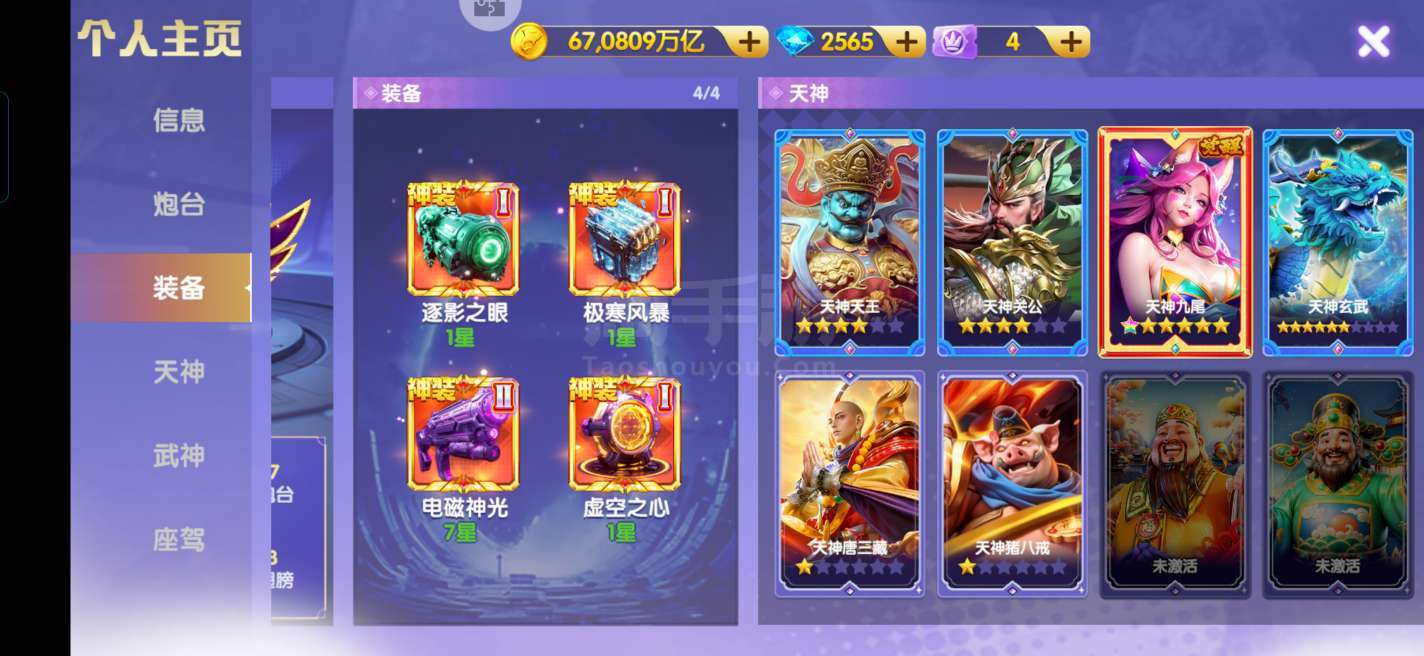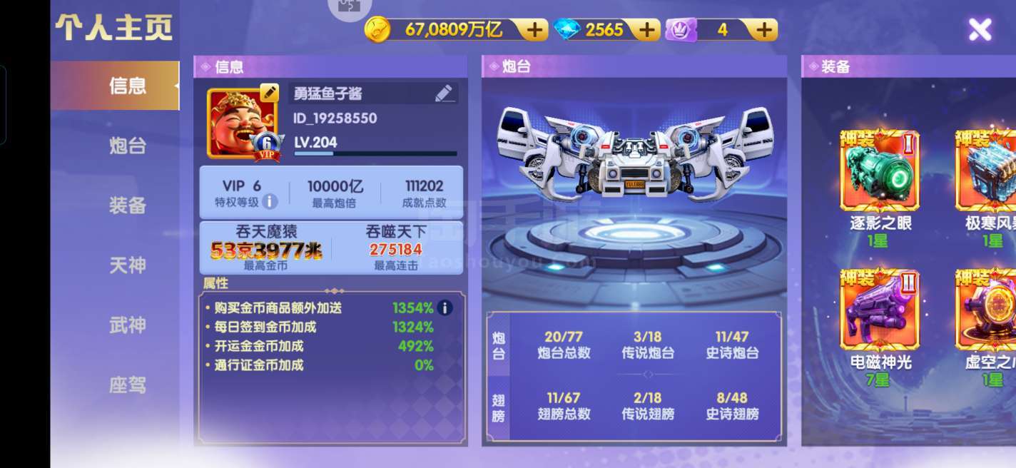 鱼乐达人【安卓华为】鱼乐达人华自玩账号,67京卖个分钱,全神装,13武神万炮,西游暴击!1200连击,仓库道具齐全!
