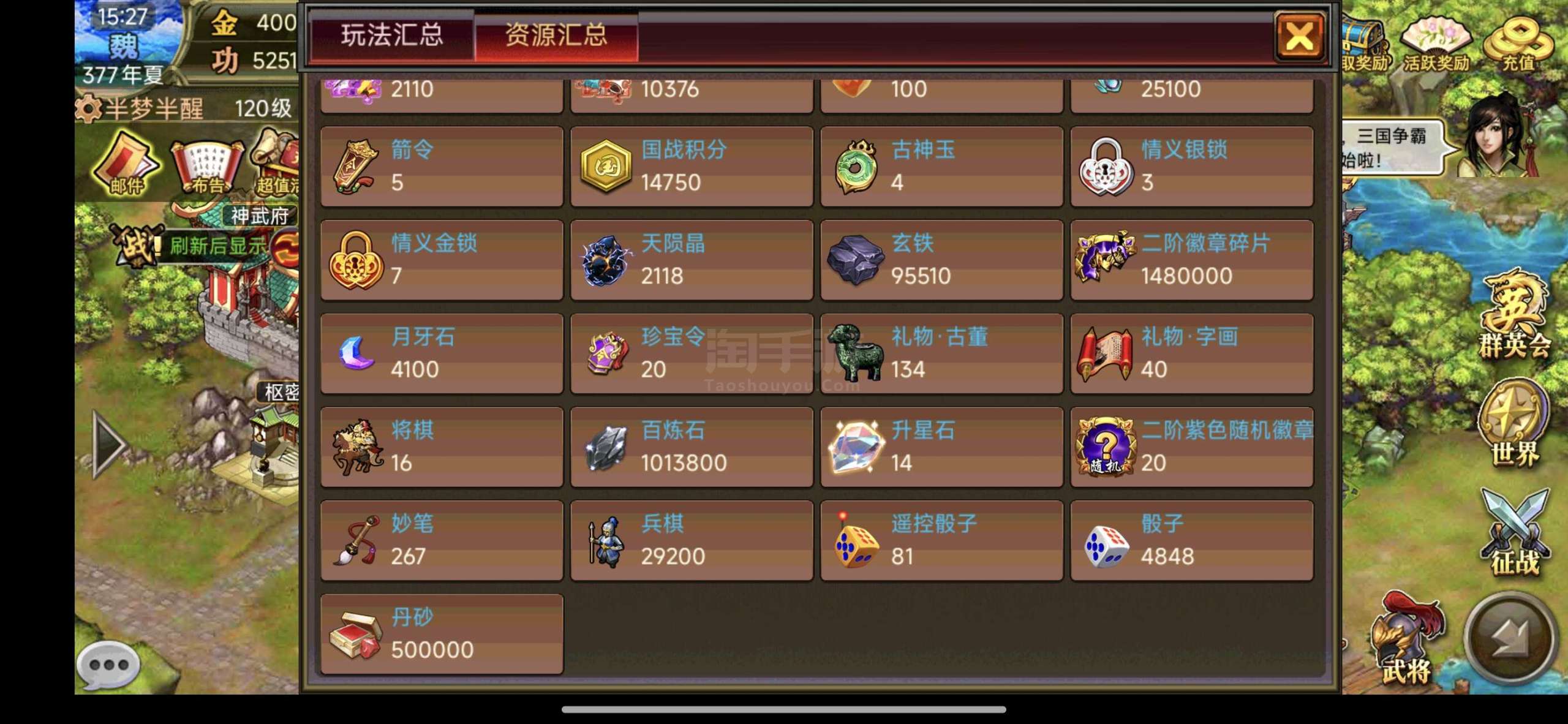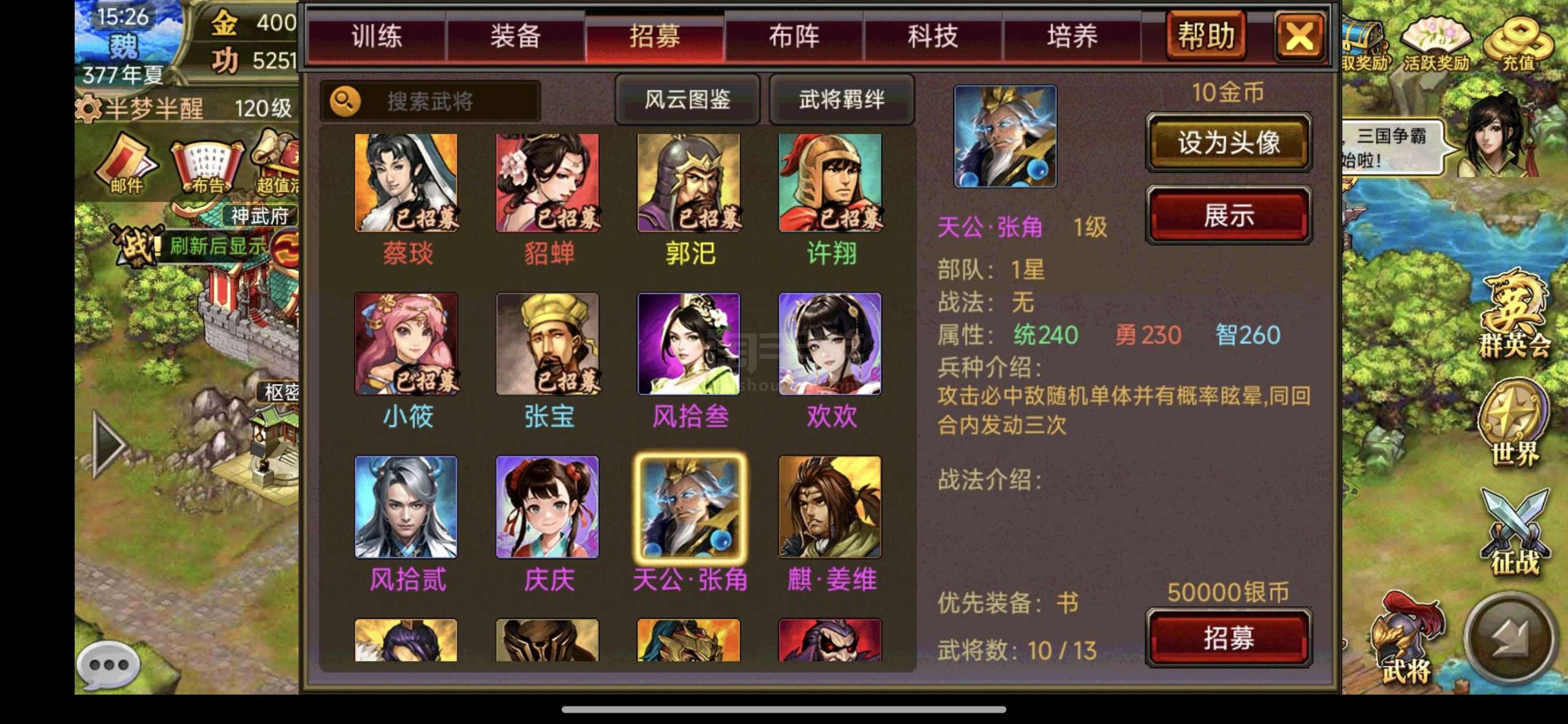 风云天下OL【安卓官方】还价勿扰,金40万,自带15万神将天公张角,夷陵势力