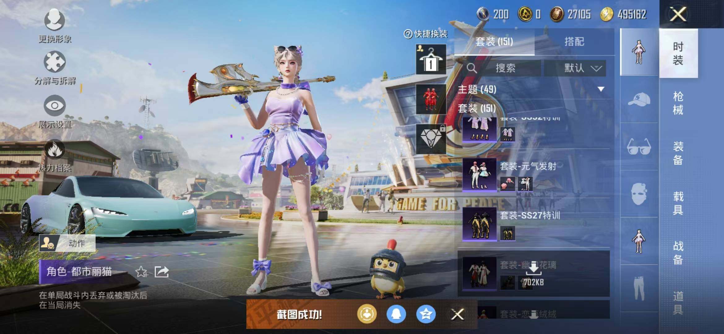 【特效枪等级】:AKM-炫紫旋律(七级),M416-心之恋语(七级),Kar98K-巳巳如意(三级),M249-蓝莓炮弹(七级)