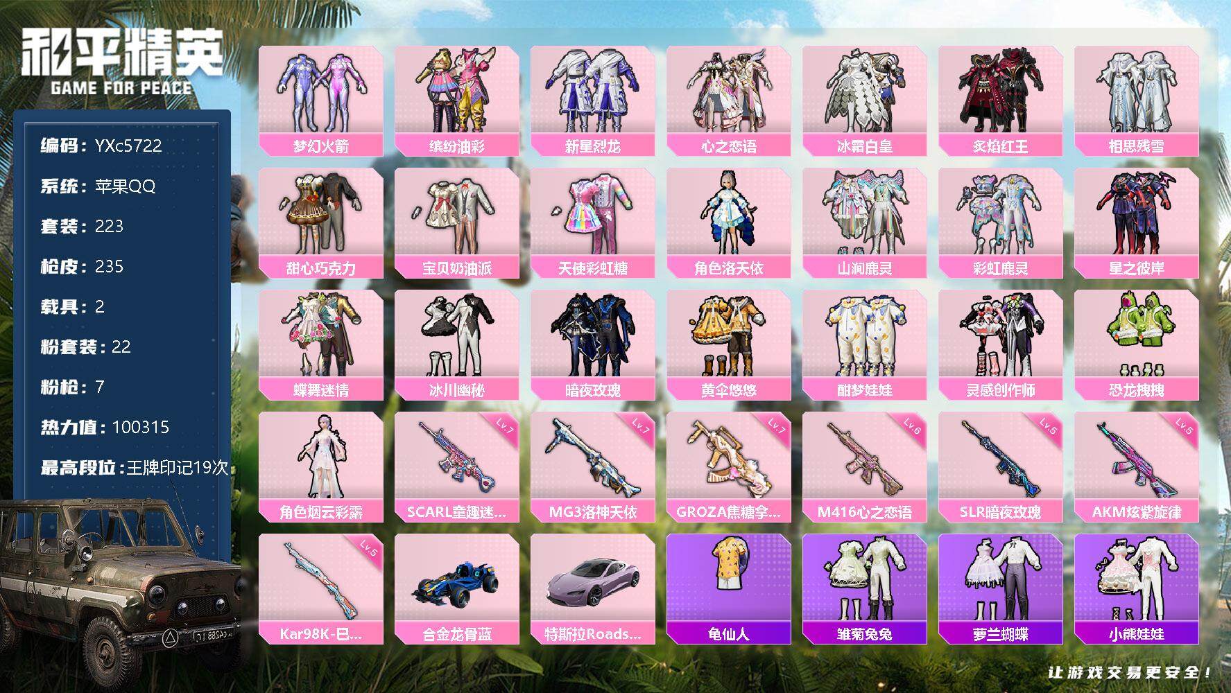 【素材搭配号 战神框 木乃伊 寒蝎 都市 巧克力 猪妹 柯基 胖达 双马尾 红眼罩 猫爪 粉熊包】YXc5722【可二次】【因赛季更新游戏段付以上号为准!】苹果Q-10w热力值 19王牌印记 历史无敌战神 223套装 235枪皮 【2载具】 特斯拉R沁心粉 合金龙骨蓝色 【4稀有】 木乃伊 寒蝎幽灵 都市猎人 浪漫天命 【22粉装】 梦幻火箭 蝶舞迷情 宝贝奶油派 天使彩虹糖 甜心巧克力 洛天依