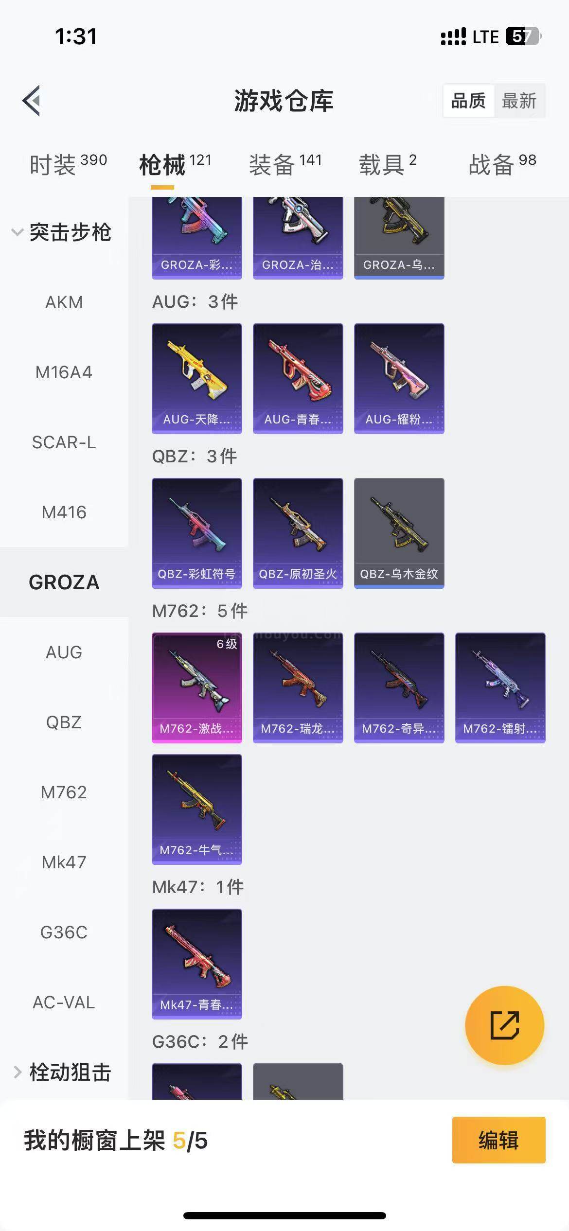 【商品标题】:苹果 手Q-5粉装-4特效枪-2载具-40906热力值-7印记-95套装-121枪皮