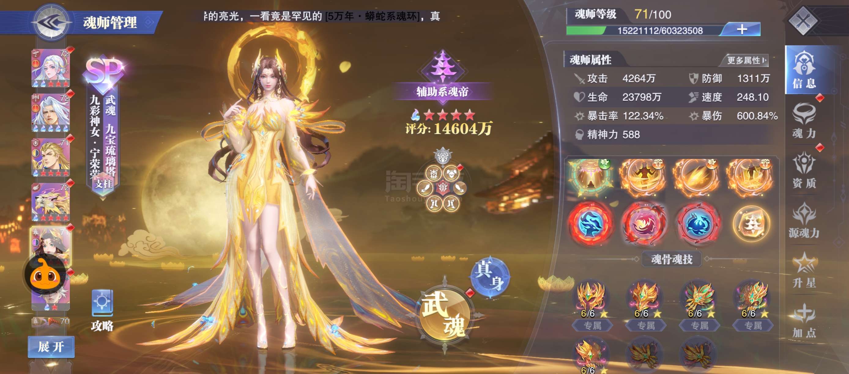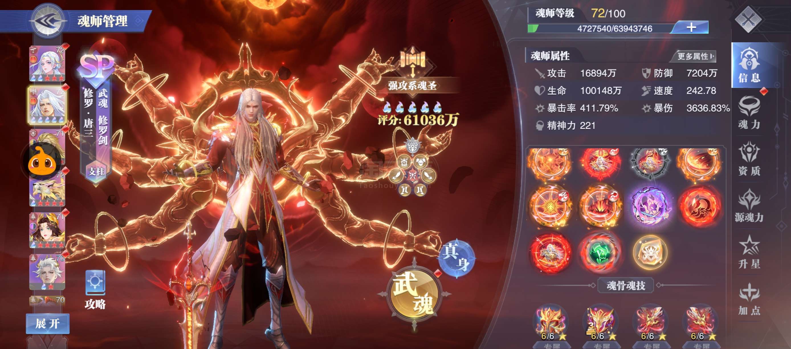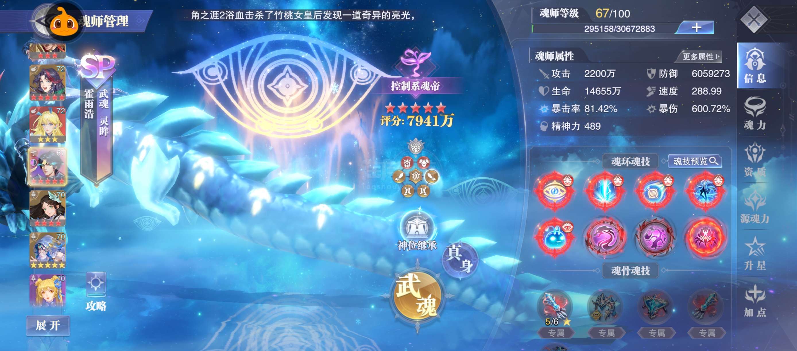 快大宗师了,20亿战力,极道尘心五星,修三四专,大荣五专二幻,千道流四专,阿银三专,