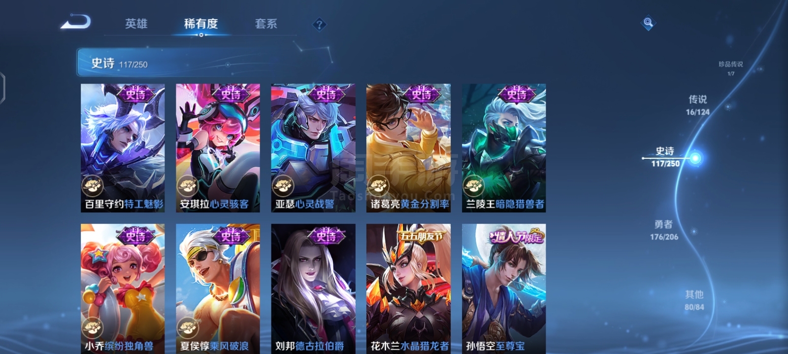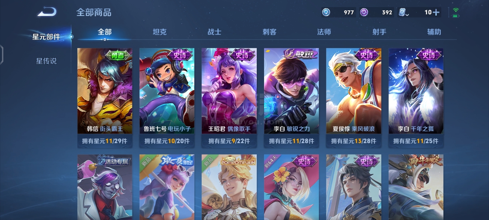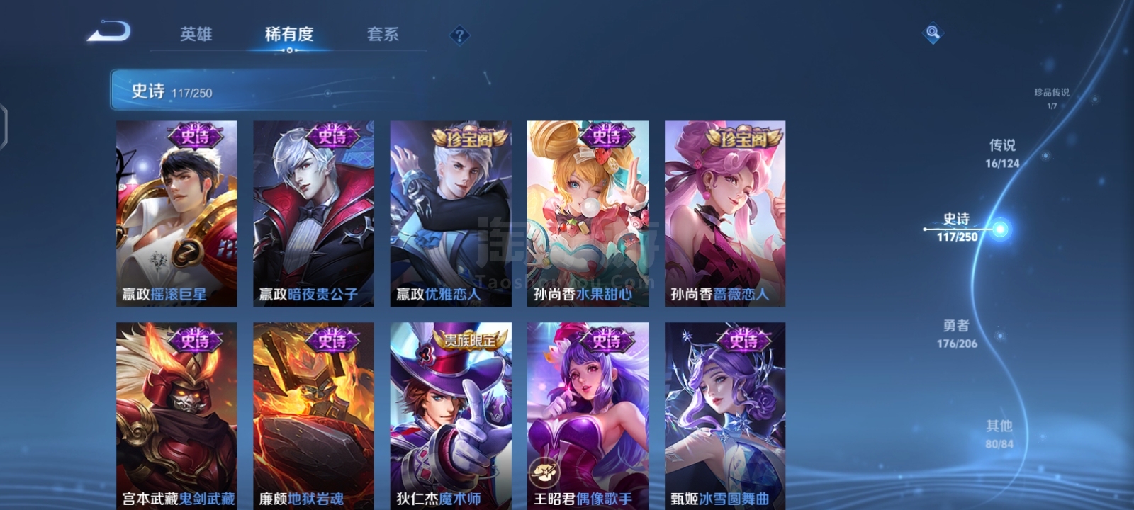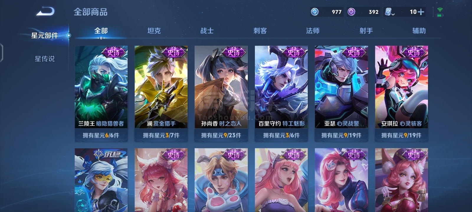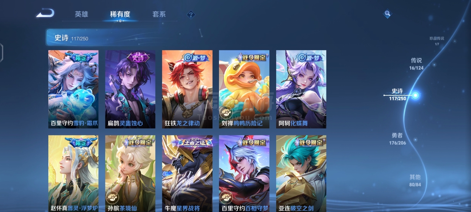 贵9,6典藏1珍品16传说,满英雄,满铭文,16印记历史荣耀,赏金已开,很多个星史诗,紫星币,可二次