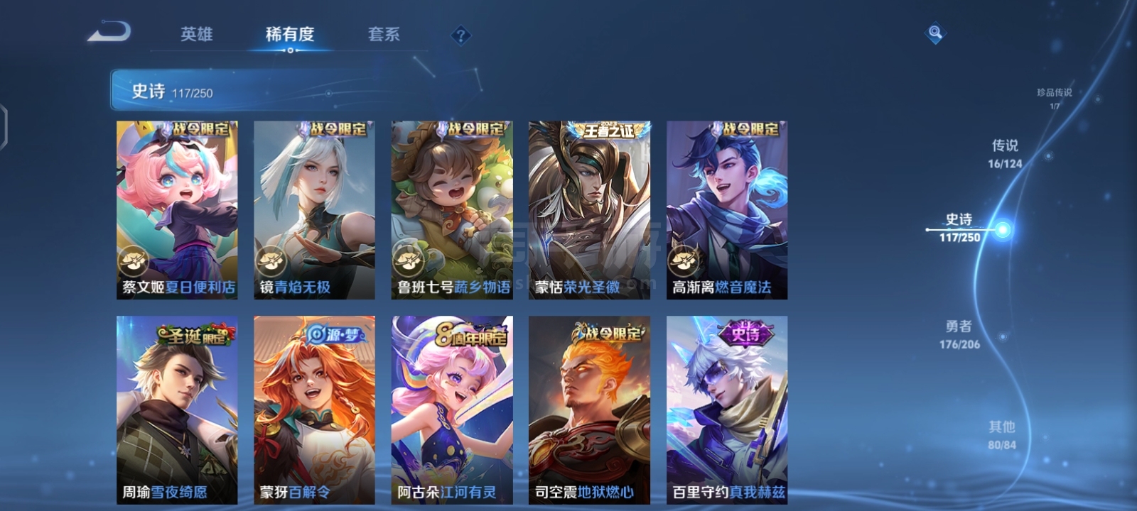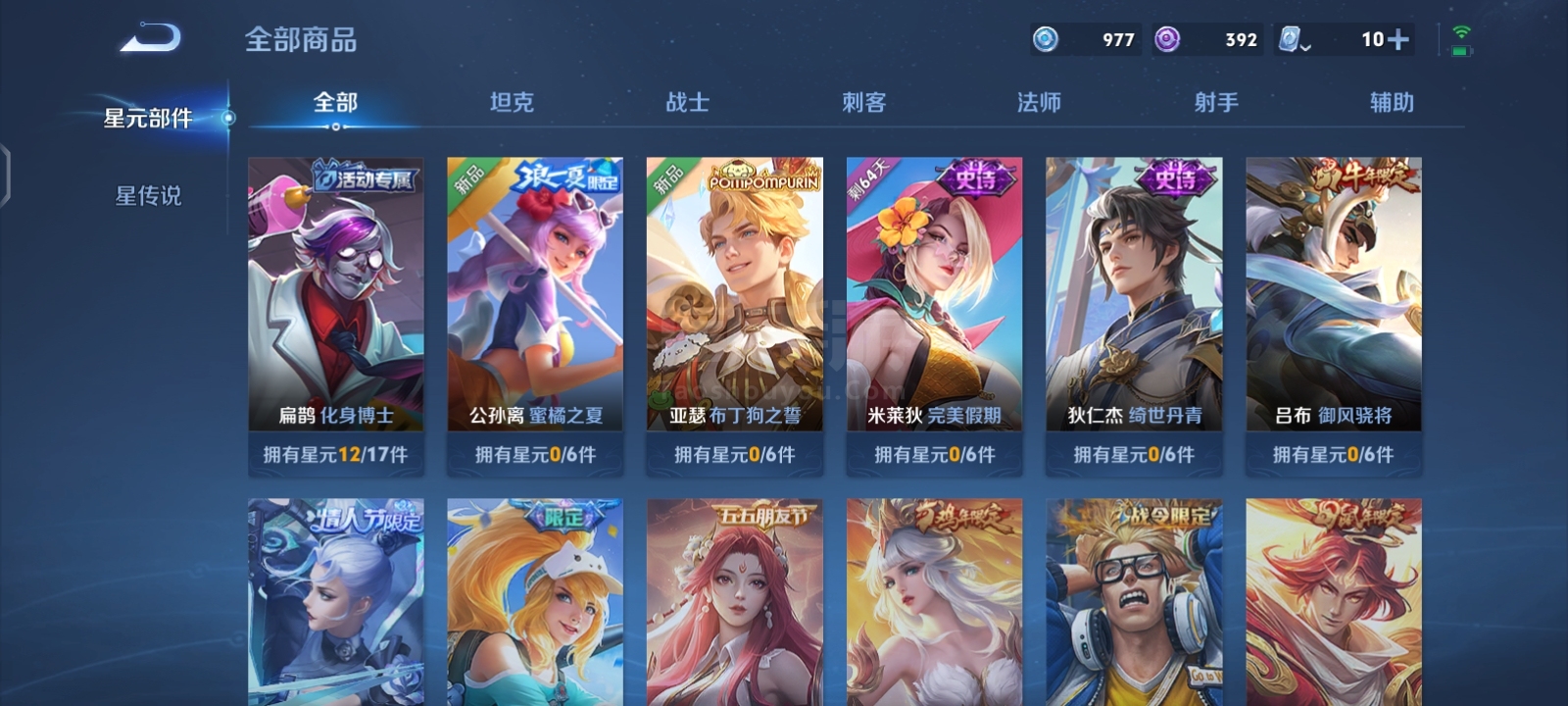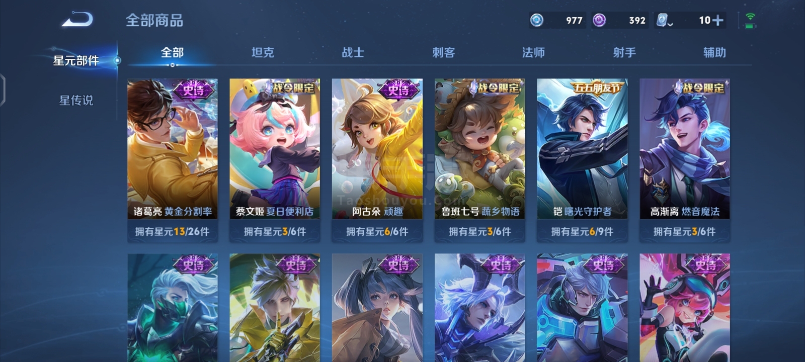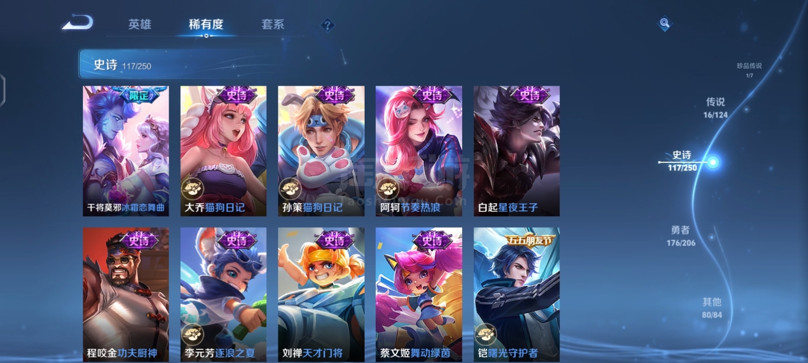 贵9,6典藏1珍品16传说,满英雄,满铭文,16印记历史荣耀,赏金已开,很多个星史诗,紫星币,可二次