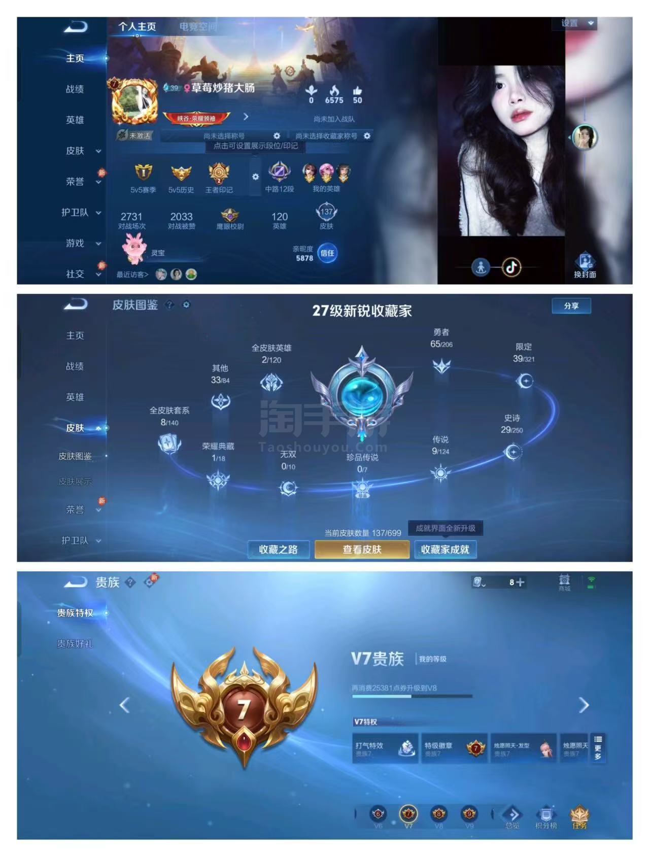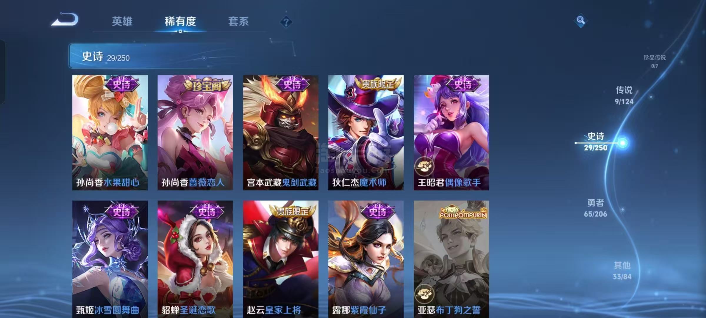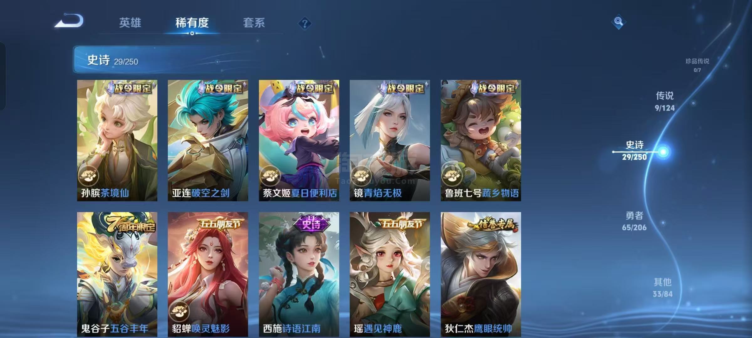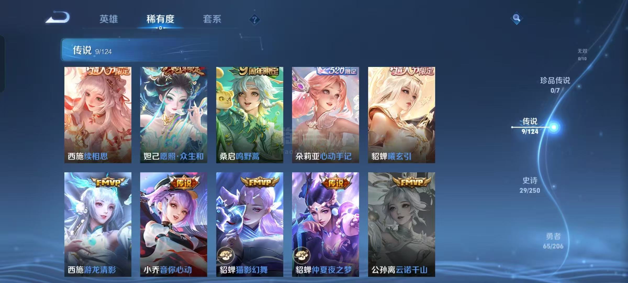 my10 王者女生号《120英雄137皮肤》1典藏1星传说9传说29史诗 时光映像 金色种夏夜 续
