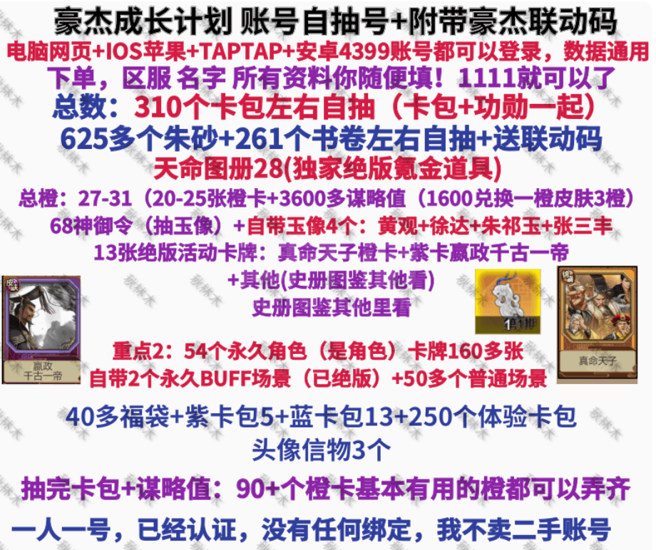 皇帝成长计划2: 4399账号 官服安卓苹果电脑互通 总保包=全卡包+战国卡包+朝代卡包+其他