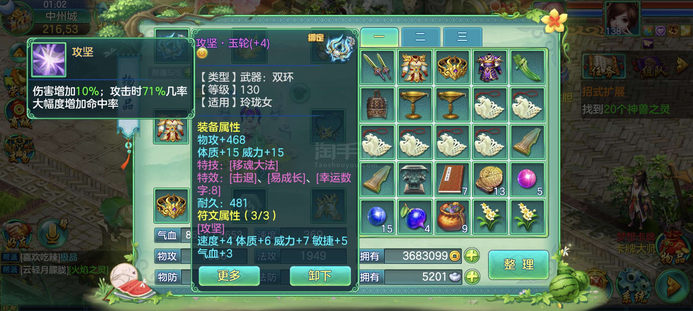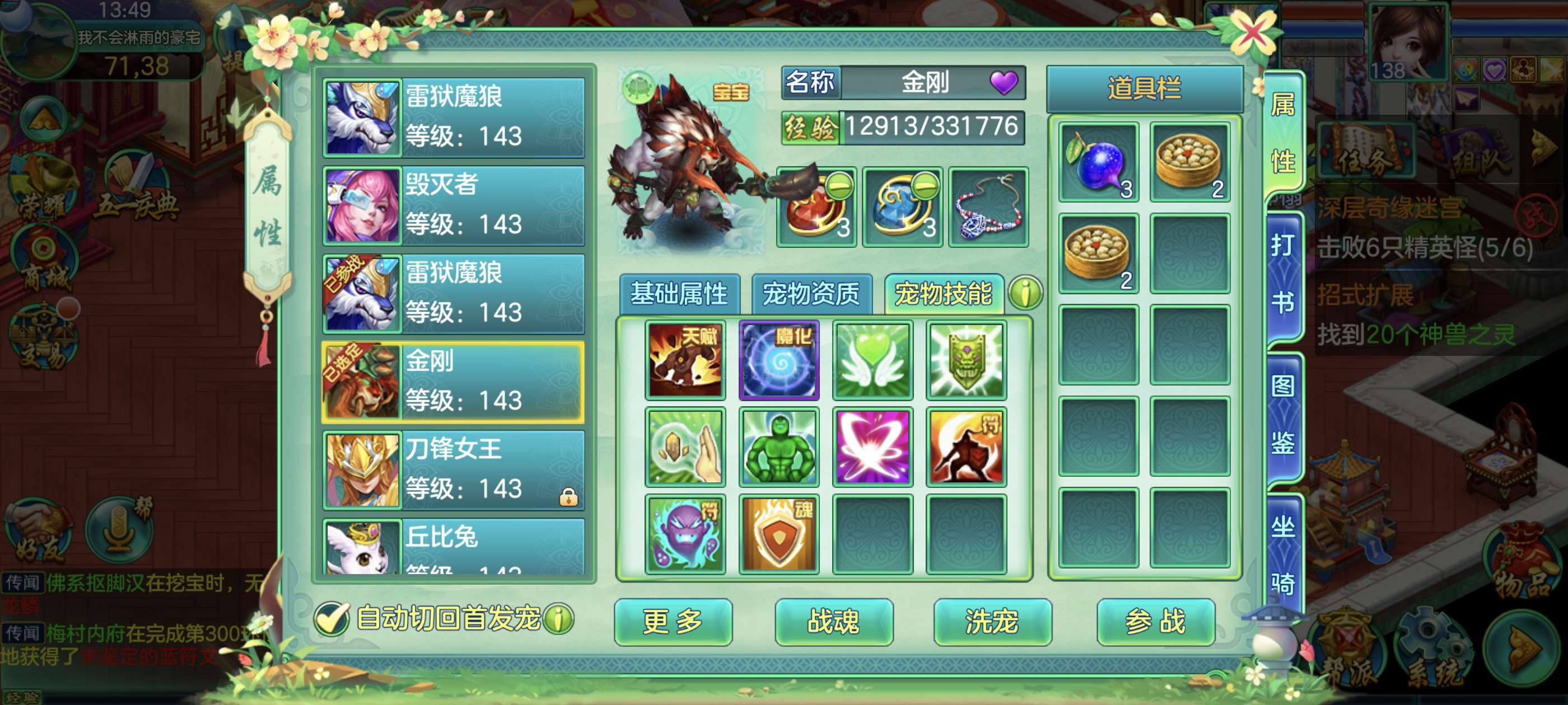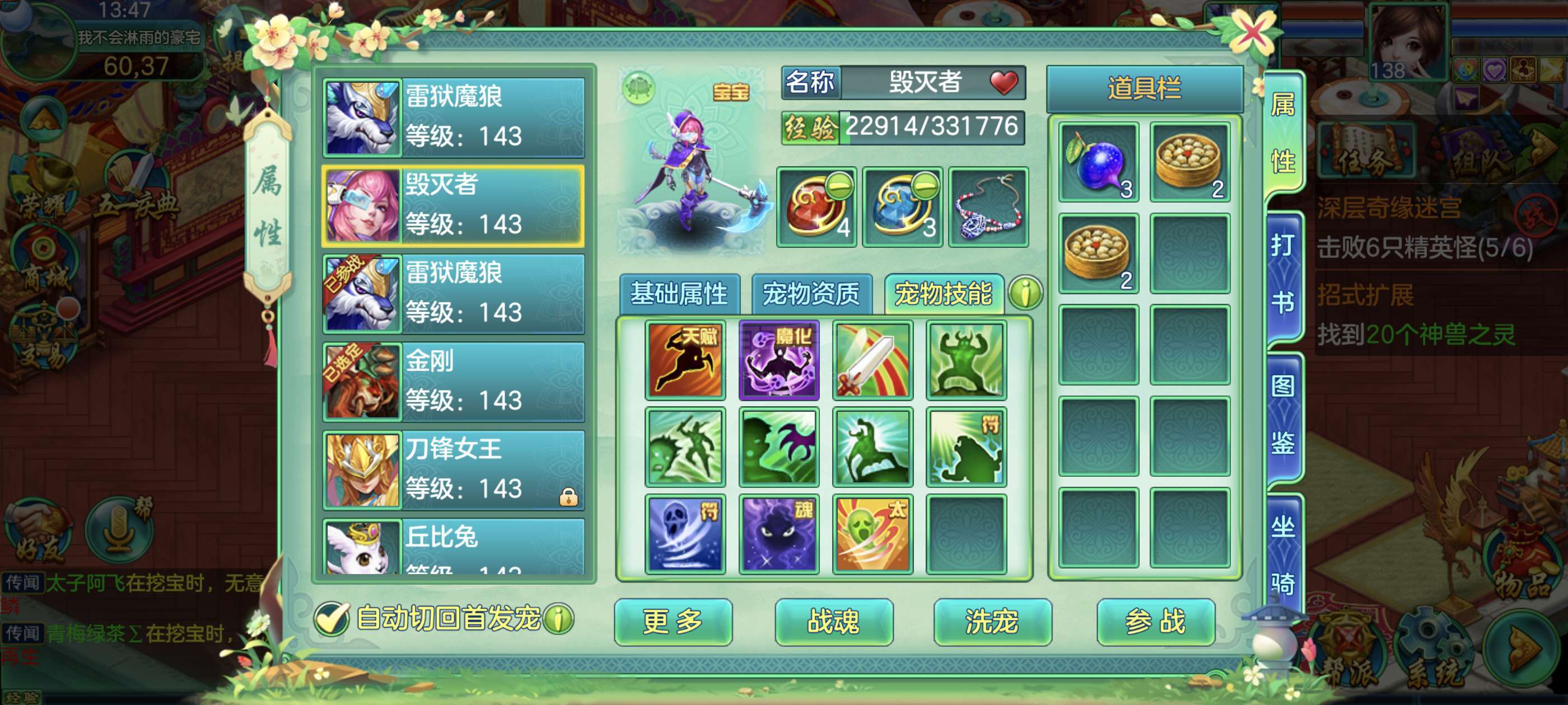 梦想世界【安卓安锋】武动一线巫妖,坐骑龙,物理法系装备都有一个1+1,一个2+1宝宝,战魂符文存货特别多
