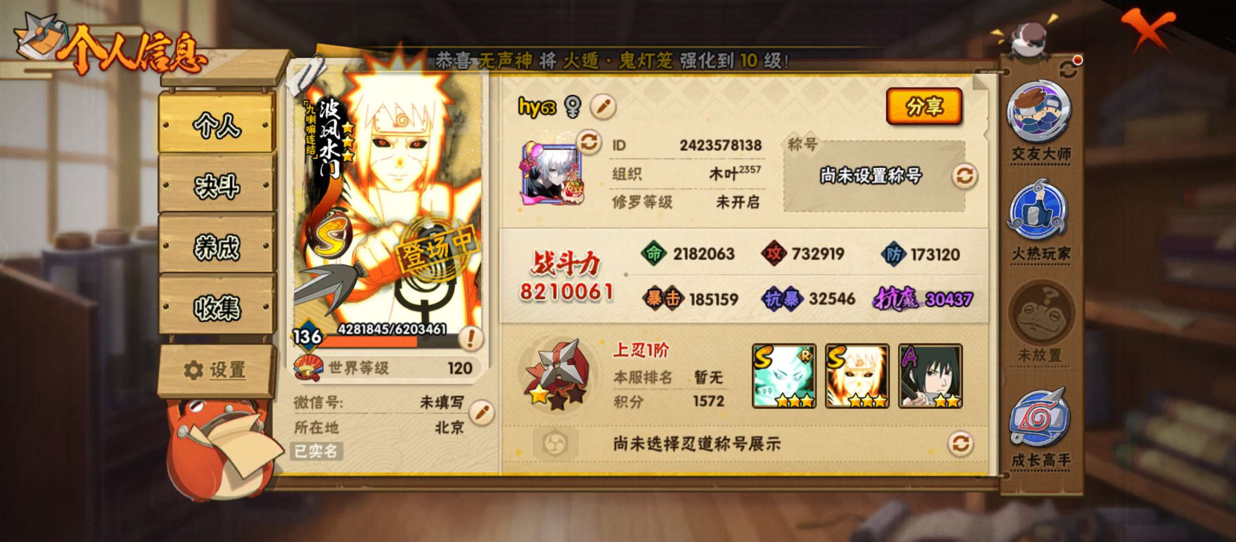 火影王者号 火影战力忍者号 正在肝龙兜