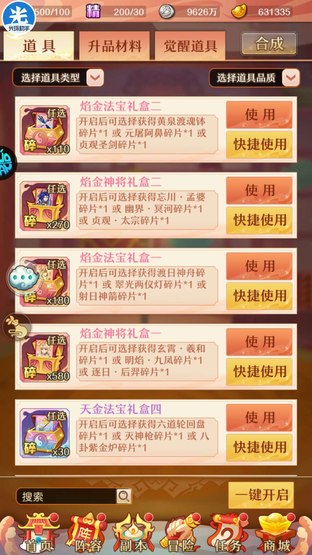 果盘里直接下或者光环助手下果盘1版。大几十万元宝,焰金资源全没落下。所有副本未打