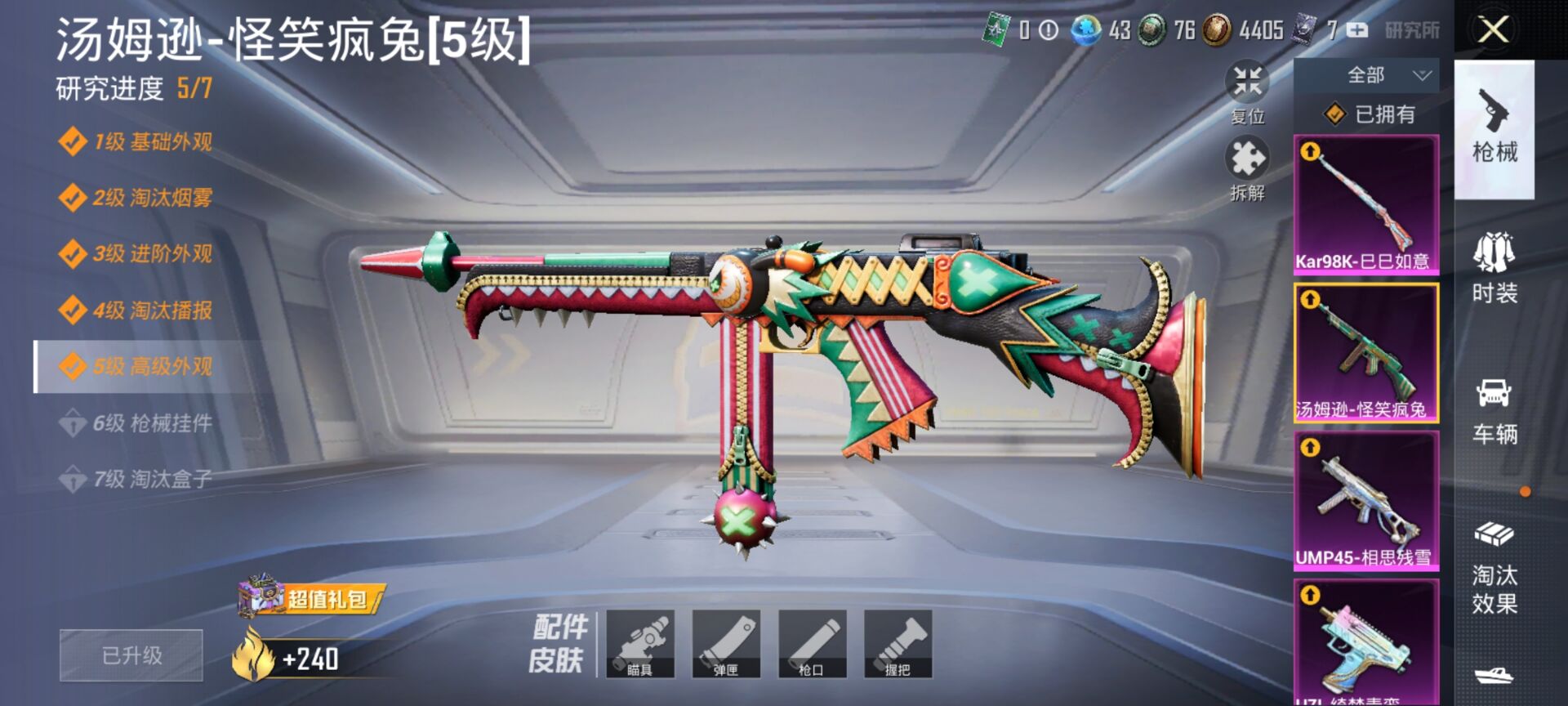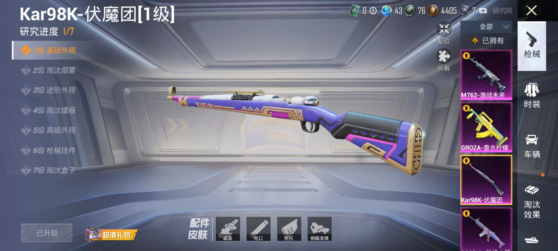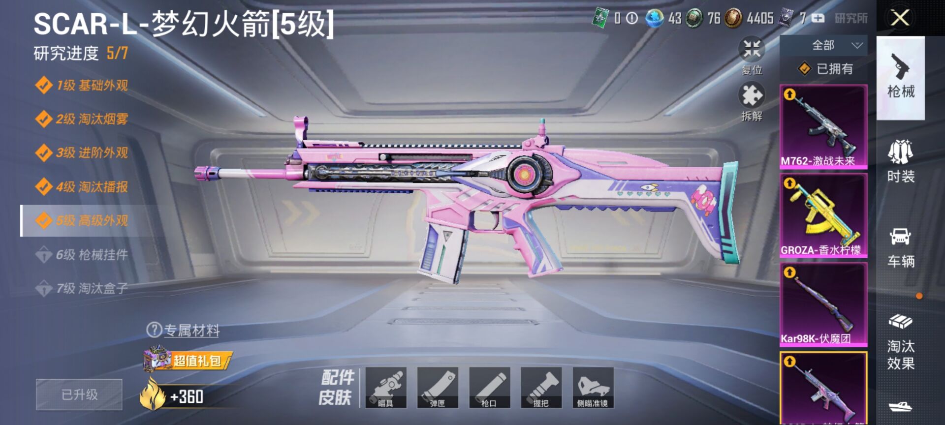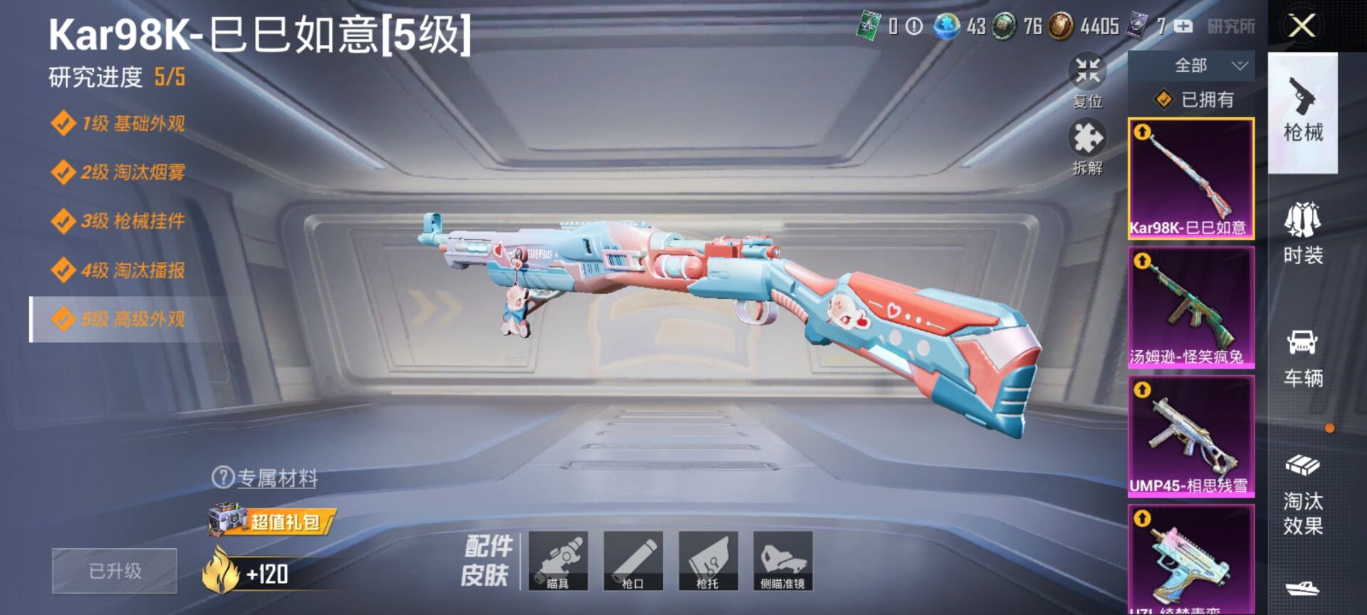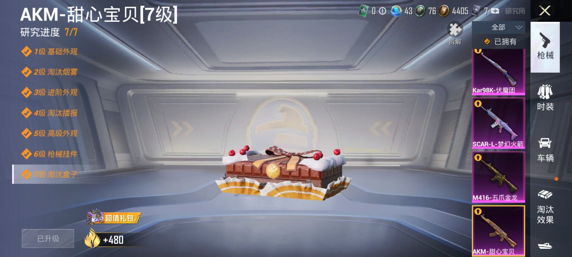 11粉装-10特效-7载具-热力值77765-总套装559-总枪皮186-王牌印记16-历史最高超级