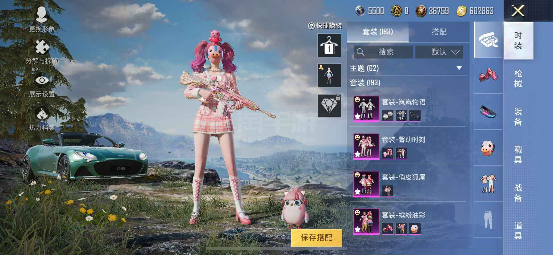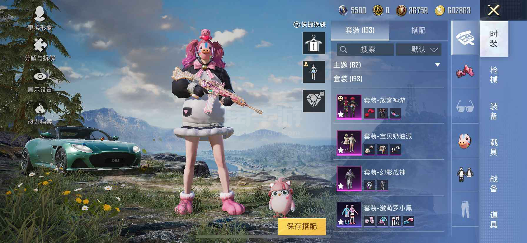卓越1传奇 巡查衣(绝对防御上衣)猪妹 放光眼罩 第五大道 馨动时刻 满级心之恋语 激萌罗小黑 深海小丑鱼 浪漫波比 胖达 红眼罩 粉熊包 192套装 207枪皮 【1载具】 阿斯顿马丁S绿色 【4稀