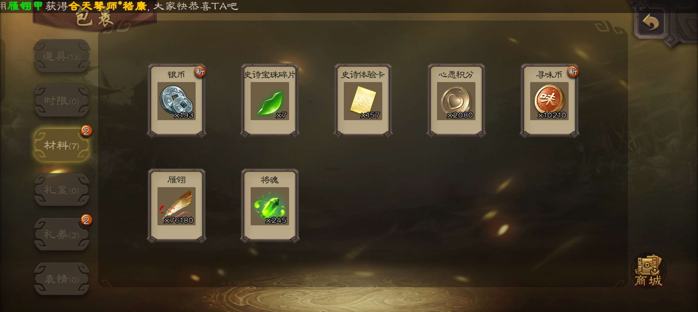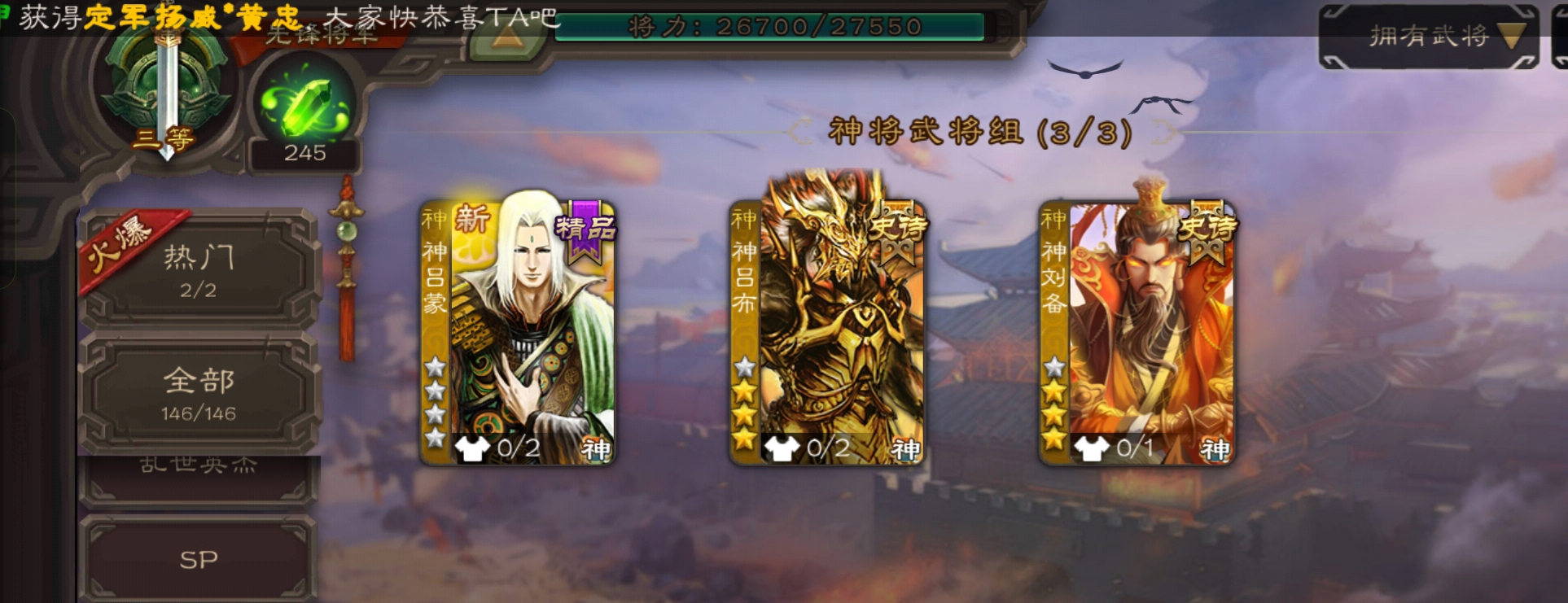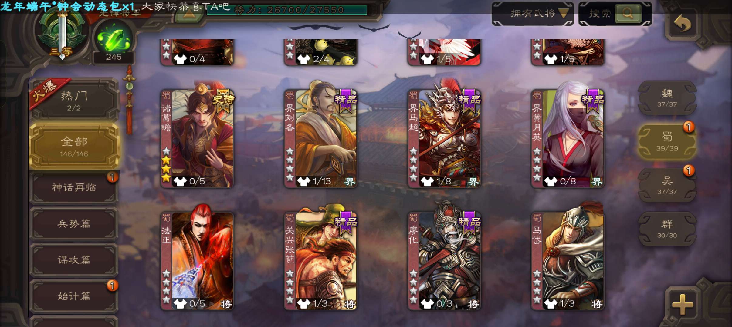 7万6羽毛,天工司马孚,神吕布神刘备诸葛瞻杨修谯周界朱然6史诗先锋,神吕蒙谋卢植谋高顺霍峻146将