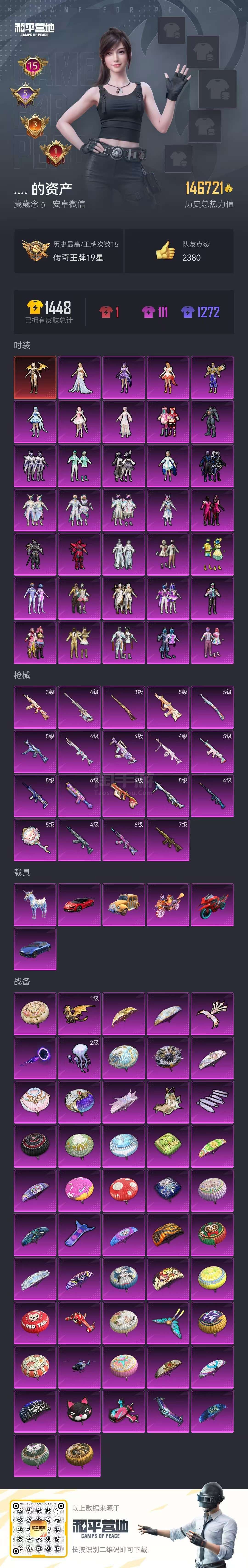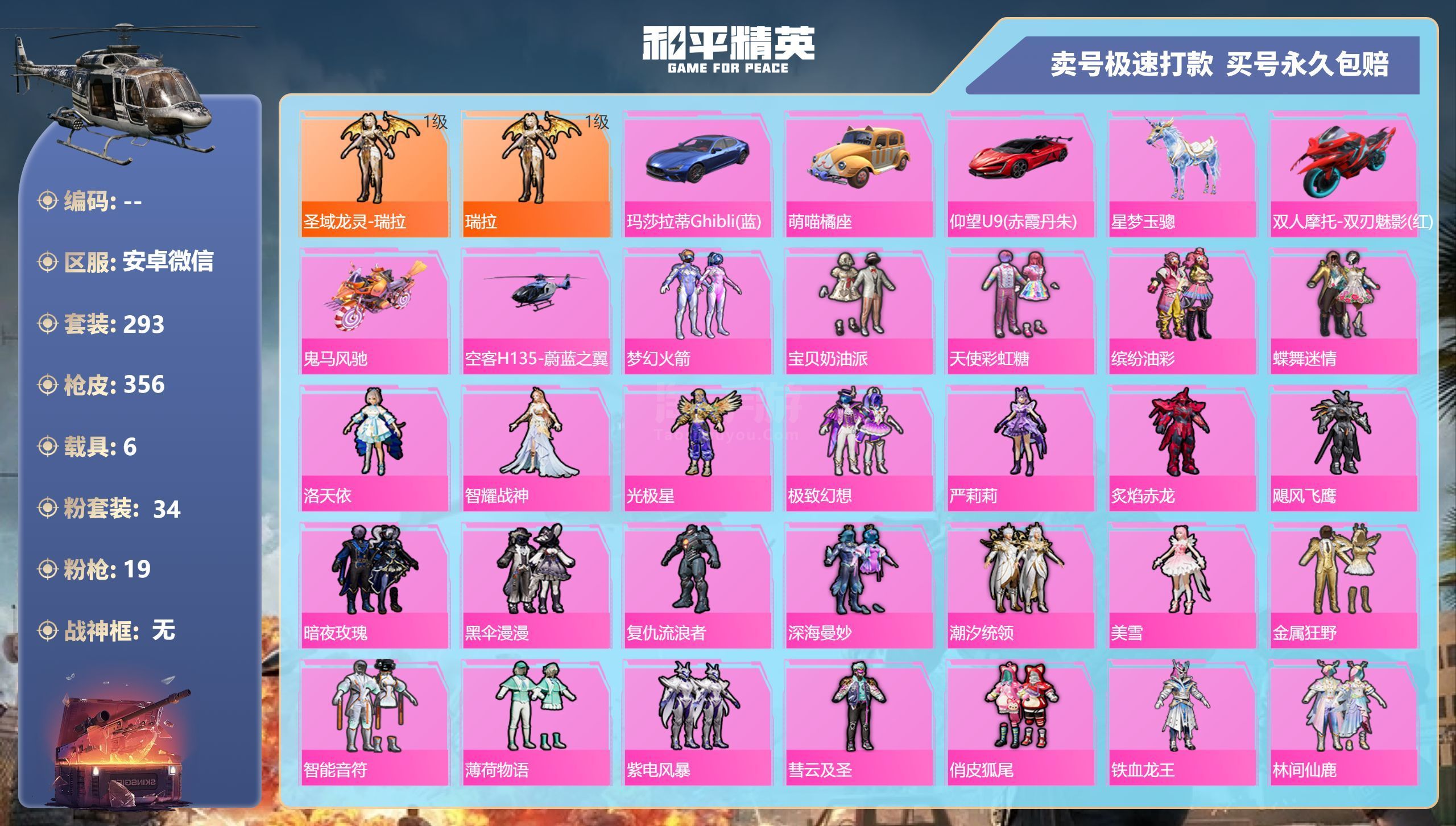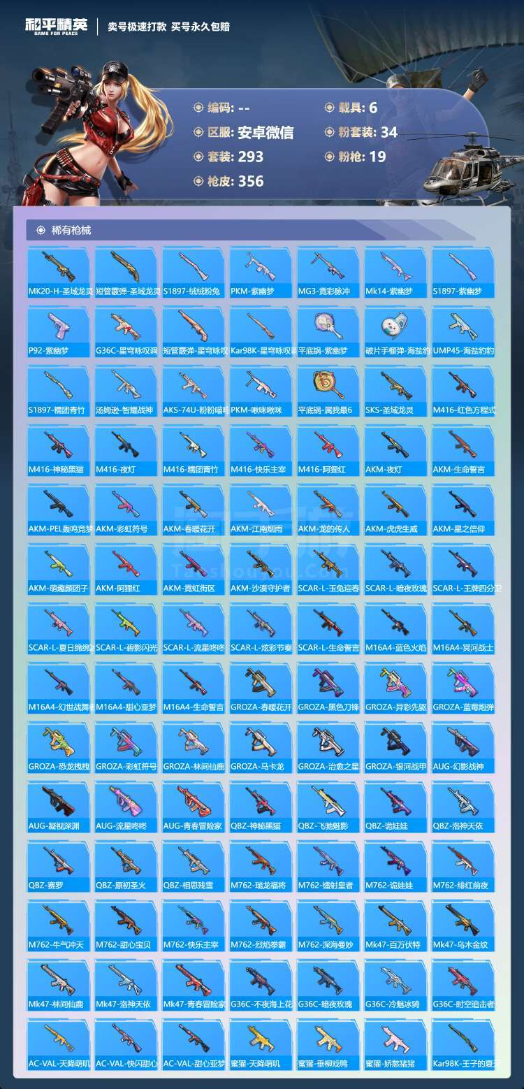 a3370/安卓微/-15王牌印记-34粉装-19特效枪-6载具-146721热力值-293套装-