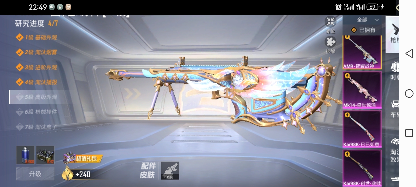 一把九级射手步枪,两把七级狙,两辆车,两个极品飞行器,凤凰和马车,狐狸装